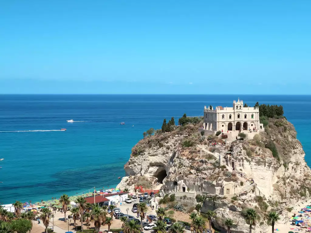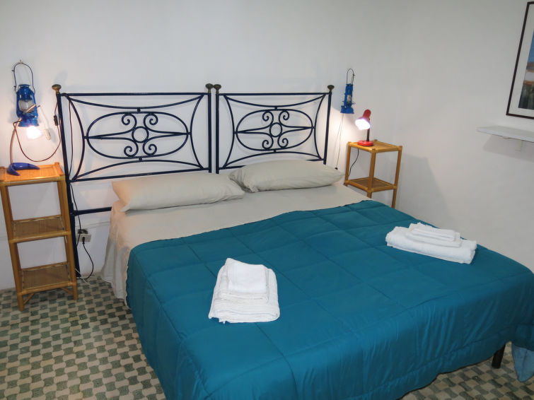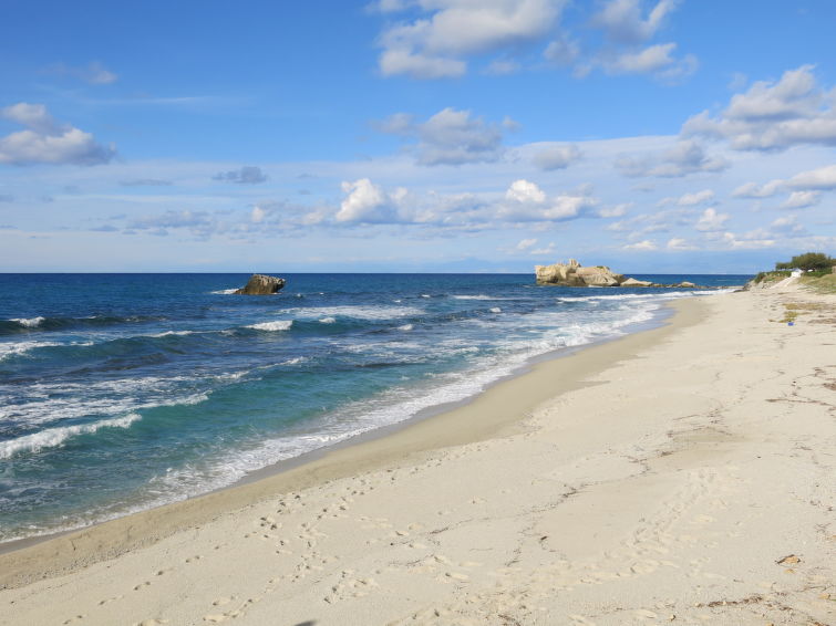2-family house "Sulla Scogliera", 40 m a.s.l., surrounded by trees and fields. In the district of Riaci 2.5 km from the centre of Tropea, 10 km from the centre of Capo Vaticano, 30 km from the centre of Vibo Valenzia, in an elevated position on a slope, 700 m from the sea, direct access to the beach. For shared use: terraced garden, 3 ha with trees, natural garden, orchard. 100 m long motor access (via unmade road). Supermarket 2.5 km, restaurant, bar 700 m, bus stop 1 km, railway station "Ricadi" 1 km, ferry "Tropea - Isole Eoliche" 2.5 km, sandy beach 700 m. Please note: the owner lives on the same property. The owner lives in the same residence. Railway line 50 m from the property.3-room apartment 100 m2, on the ground floor. Practical furnishings: living/sleeping room with 1 sofabed, dining table and paraffin heater. Exit to the terrace. 1 room with 1 french bed (160 cm), paraffin heater. 1 room with 2 beds (80 cm), paraffin heater. Open kitchen (oven, dishwasher, 4 gas rings, freezer). Shower/WC. Terrace 45 m2, terrace 50 m2, patio 95 m2. Terrace furniture, barbecue, deck chairs (5). Marvellous panoramic view of the sea. Parking. Maximum 1 pet/ dog allowed.
