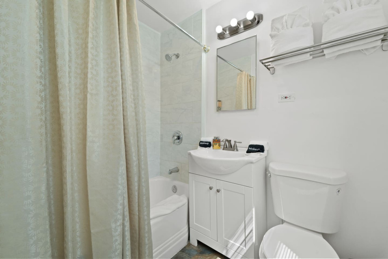 ☆ Bathroom: Refresh and revitalize in a well-lit bathroom featuring a convenient shower-bath fusion.