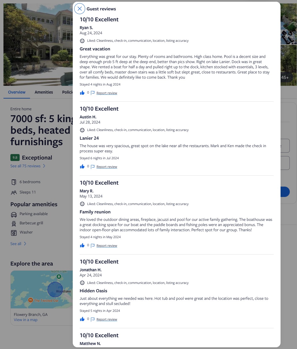 We are close to many marinas including Holiday, Aqualand and Hideaway Bay. Boat and jet ski rentals, live music, restaurants and bars are a short car or boat ride away. Close to the Lake Lanier Islands water park, golf course and Jimmy Buffett’s Margaritaville. You’ll never run out of things to do at our home. We have a kayak, canoe, paddle boards, boat dock, pool table, grill, private/heated salt water pool, hot tub, two kitchens, two inside gas fireplaces and an outside wood burning fireplace. Close to Atlanta nightlife, world-class shopping and restaurants. Minutes from the Mall of Georgia, mountains for hiking, rafting, shopping and wineries. You’re gonna fall in love with our home on Lake Lanier.
