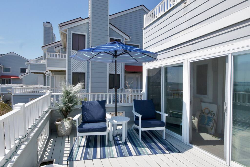 This single family home is located in a great area for enjoying Ocean City bayside dining, evenings by the water and the beach, its right off 61st Bayside the house is modern, clean, spacious and fun to stay in. The furnishings are comfortable, pretty and relaxing, I have plenty of deck furniture and sand chairs and a beach umbrella available as well. This house is in the best location in all of Ocean City. Located on 61st street in Trader's cove it has a 50' waterfront deck, a very spacious interior featuring 4 upstairs bedrooms, a full kitchen, dining, living area, and even a small sunroom. It has 2.5 baths and accommodates large and small families and groups!