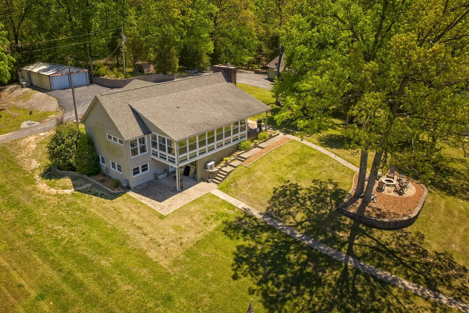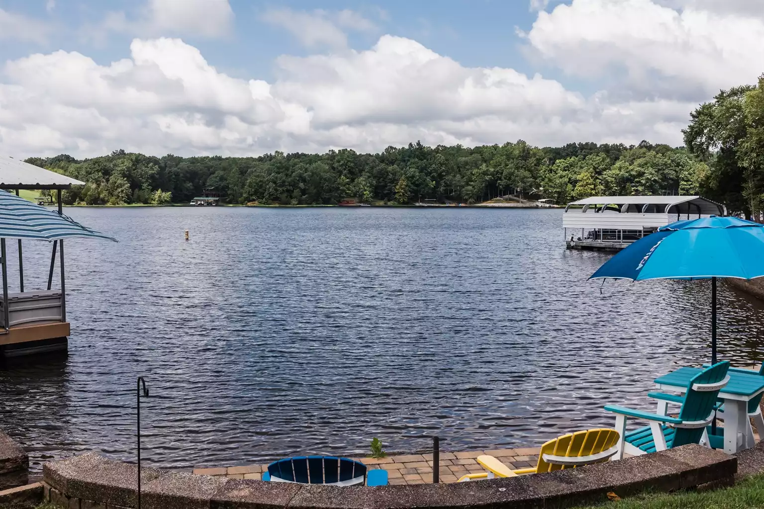 * Lake views from living room, kitchen, dining room, the deck, patio, and private dock.