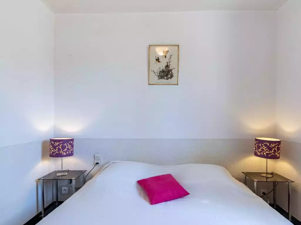 Les Lecques: Residence "Super Plage", 2 storeys. In the resort 500 m from the centre of Les lecques, 30 m from the sea, road to cross. Shop 500 m, supermarket 1.5 km, restaurant 400 m, bus stop "Le Viguier" 1.1 km, railway station "Saint Cyr les Lecques-La Cadière" 2.2 km, sandy beach 30 m. Golf course (18 hole) 5 km. Nearby attractions: Aqualand 2 km. Hiking paths: Sainte Baume, Sainte Victoire, Calanques, Port-Cros,Porquerolles. Please note: the keys‘ handover takes place by the agency Interhome in SaintCyr La Madrague, 2 km. The photograph shows a typical example. Additional accommodations can be booked.2-room apartment 36 m2, on the ground floor. Simple and practical furnishings: living/dining room with TV (flat screen). Exit to the terrace. 1 room with 2 beds (90 cm, length 190 cm). Kitchenette (2 hot plates, kettle, microwave, electric coffee machine). Shower, sep. WC. No heating option. Terrace 6 m2, south-east facing position. Terrace furniture. Facilities: Internet (WiFi, extra). Parking (1 car). Please note: not suitable for children under 3 years. TV only FR. Smoke alarm. 83112000683UA