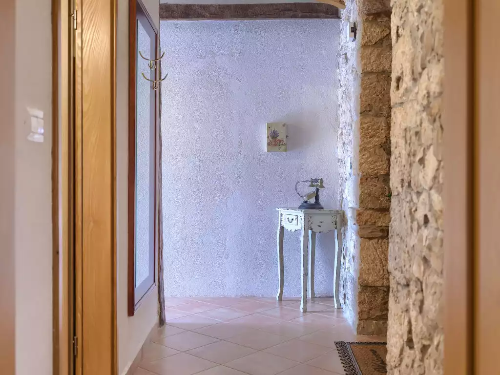 Old, beautiful single-family house "Susanne", 2 storeys, renovated in 2018. In the hamlet Orič 8 km from the centre of Pićan, 20 km from the centre of Labin, 27 km from the centre of Rabac, in a quiet, sunny position, 27 km from the sea. Private: property 355 m2, small garden, swimming pool angular (8 x 4 m, depth 140 cm, seasonal availability: 01.May. - 30.Sep.). Outdoor shower, hot tub, garden furniture, barbecue. In the house: internet access, trampoline, central heating system, washing machine. Available: bicycles (2). Parking (for 3 cars) at the house on the premises. Shop 3 km, supermarket 12 km, restaurant 12 km, bus stop 12 km, pebble beach 27 km. Walking paths from the house 100 m, cycle lane 150 m. Private:outdoor kitchen (2 hot plates, dishwasher, fridge).3-room house 84 m2 on 2 levels. Entrance hall with air conditioning. 2 rooms, each room with 1 french bed (160 cm, length 200 cm). Bath/WC. On the lower ground floor: living/dining room 35 m2 with 1 sofabed (140 cm, length 200 cm), satellite TV (flat screen). Exit to the garden. Open kitchen (4 hot plates, oven, microwave, freezer, electric coffee machine). Deck chairs. Facilities: safe, hair dryer. Internet (WiFi, free). Living/dining room, open kitchen with a small window are situated on the low ground floor. 2753/1748