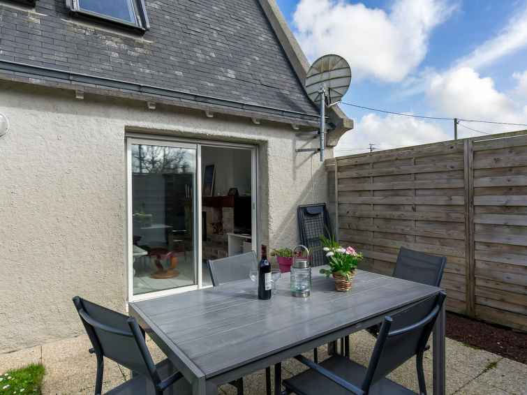 Small single-family house "Tal Ar Mor". In the hamlet Le Kernic 4 km from the centre of Plouescat, 4 km from the centre of Plounévez-Lochrist, 15 km from the centre of Lesneven, 100 m from the sea, 1.2 km from the beach. Private: property 80 m2, well-kept garden 30 m2 (fenced) lawn and wildlife garden, parking on the premises. Shop 3.5 km, supermarket 3 km, restaurant 3 km, bakery 4 km, bus stop 1 km, sandy beach "Baie de Kernic, dépendant marée" 100 m, indoor swimming pool 15 km, thermal baths "Thalasso Roscoff" 24 km. Marina 5.5 km, golf course (9 hole) 6 km, surf school 5.4 km, sailing school 5.4 km, minigolf 3.7 km, walking paths from the house 100 m. Nearby attractions: Réserve ornithologique Dunes de Keremma 5 km, Meneham, Kerlouan 14 km, Château de Kerjean Saint Vougay 13.5 km, Jardin exotique, Roscoff et Île de Batz 23 km, Morlaix 40 km, Océanopolis Brest 45 km. Please note: the owner lives on the same property."Tal Ar Mor", 1-room house 55 m2 on 2 levels. Bright, cosy furnishings: living/dining room with Scandinavian wood stove, dining table and satellite TV. Exit to the garden. Open kitchen (oven, 3 induction hot plates, toaster, kettle, microwave, freezer, electric coffee machine). Shower/WC. Upper floor: open gallery with sloping ceilings with 2 beds (90 cm, length 200 cm). Electric heating. Terrace. Terrace furniture, barbecue (portable), deck chairs (2). Facilities: washing machine, iron, children's high chair, baby cot, hair dryer. Internet (WiFi, free). Please note: non-smoking house. Maximum 1 pet/ dog allowed. Smoke alarm. 29206 000019 HU