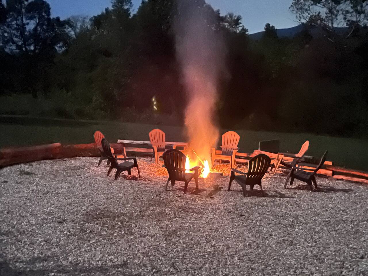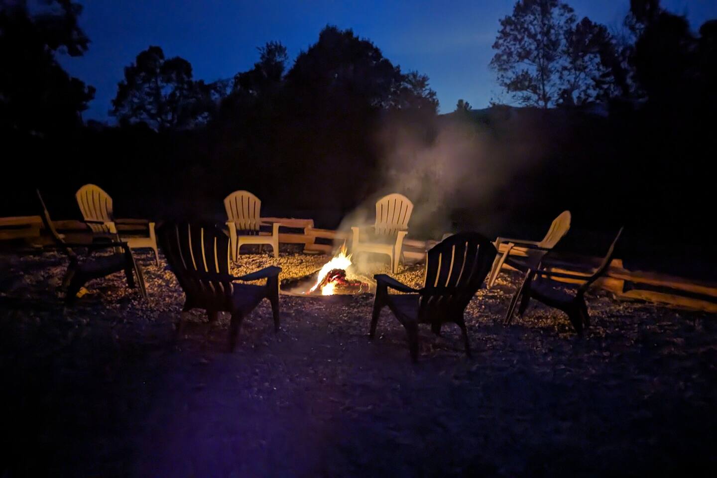 Just down the deck stairs, we have a large gravel area, a fire ring with seating for 8.