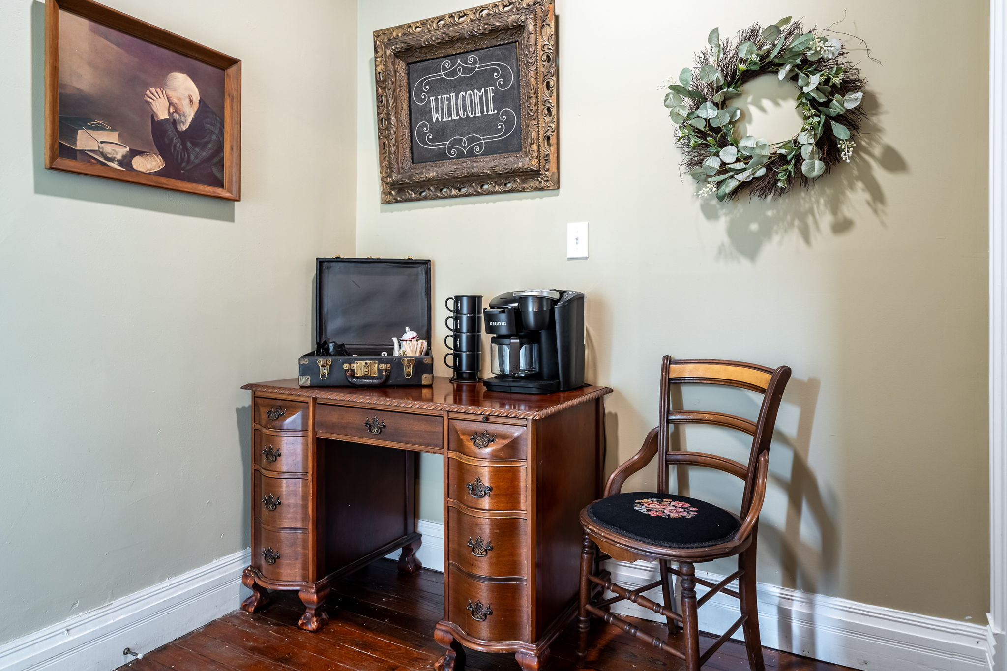 Come enjoy the enchanting Victorian-themed studio room at our charming bed & breakfast nestled in the heart of Marthasville, Missouri. Stepping into this carefully curated space, you will be transported back in time to the opulence and grandeur of the Victorian era, where elegance and refinement reign supreme.