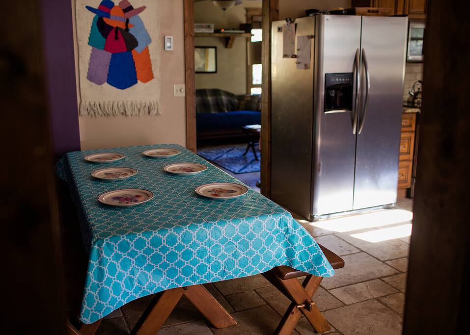 The home was built in the 1940s yet it has been updated with modern conveniences. Inside the house are three bedrooms which sleep a total of 7 people. Two of the bedrooms have a queen sized bed and the third bedroom (separated from the first queen room by a curtained doorway) has a bunk bed and a single bed. Feel free to unpack and store your clothes in the empty dressers as well as in the closet in the second queen bedroom.