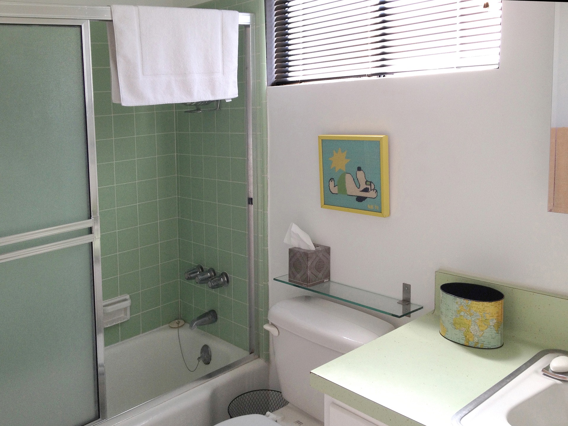 Large Mid-Century 1BR (aprx 700 sq ft) in quiet building located in the Spa Zone of Desert Hot Springs, CA. 1 Bedroom (queen size bed), 1 bath, living room, dining area , full kitchen, and free off-street parking.