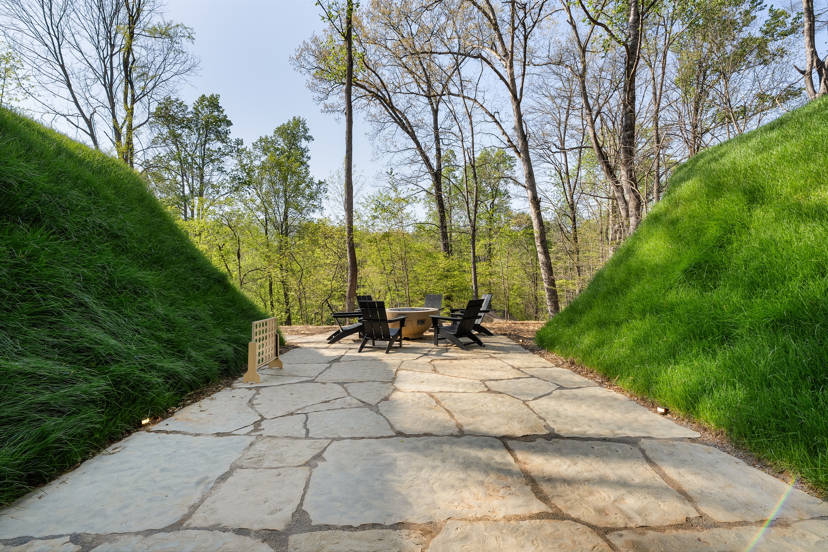 Escape to this one-of-a-kind hillside retreat in west Knoxville, where nature meets design. Built into the slope and blanketed in grass, this earth-sheltered, dome-shaped home offers 3 cozy bedrooms and sleeps up to 10 guests. With its curved architecture and natural insulation, it's as peaceful as it is unique. Enjoy the quiet forest setting, outdoor fire pit, and modern comforts—all tucked into the landscape for a truly unforgettable stay.