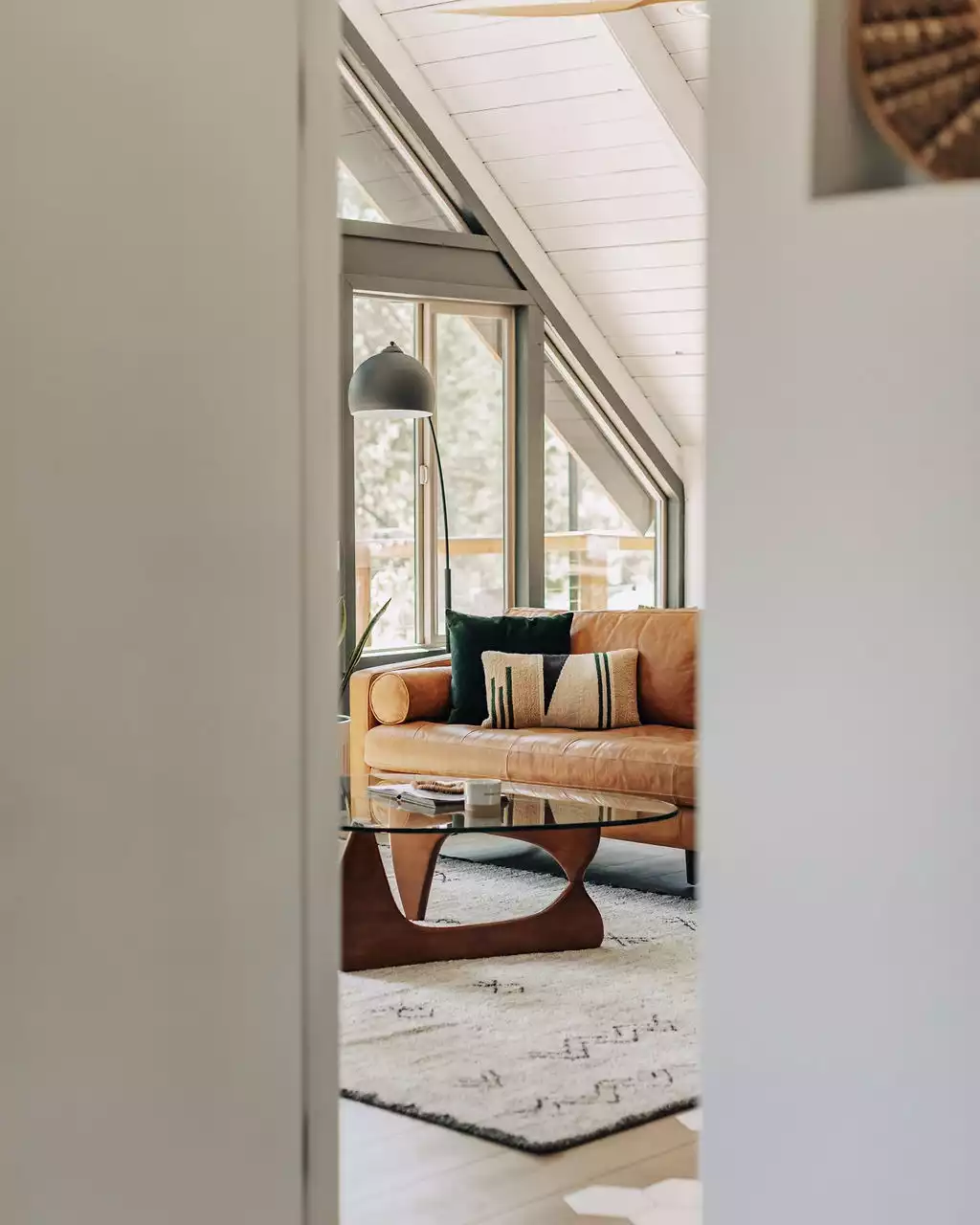 Just because you've outgrown sleep-away camp, doesn't mean you have to stop crushing on felt pennant flags, wool Pendleton blankets, + bunk beds! The design and decor of this A-Frame-like cabin marries the rugged charms of camp life with a modern edge. Details such as vaulted tongue-and-groove ceilings, a retro pellet stove fireplace, built-in bunk beds, a wrap-around deck with verdant forest views, and a fire-pit just waiting for s’mores and scary stories will provide the perfect space to relax, reconnect, and recharge.