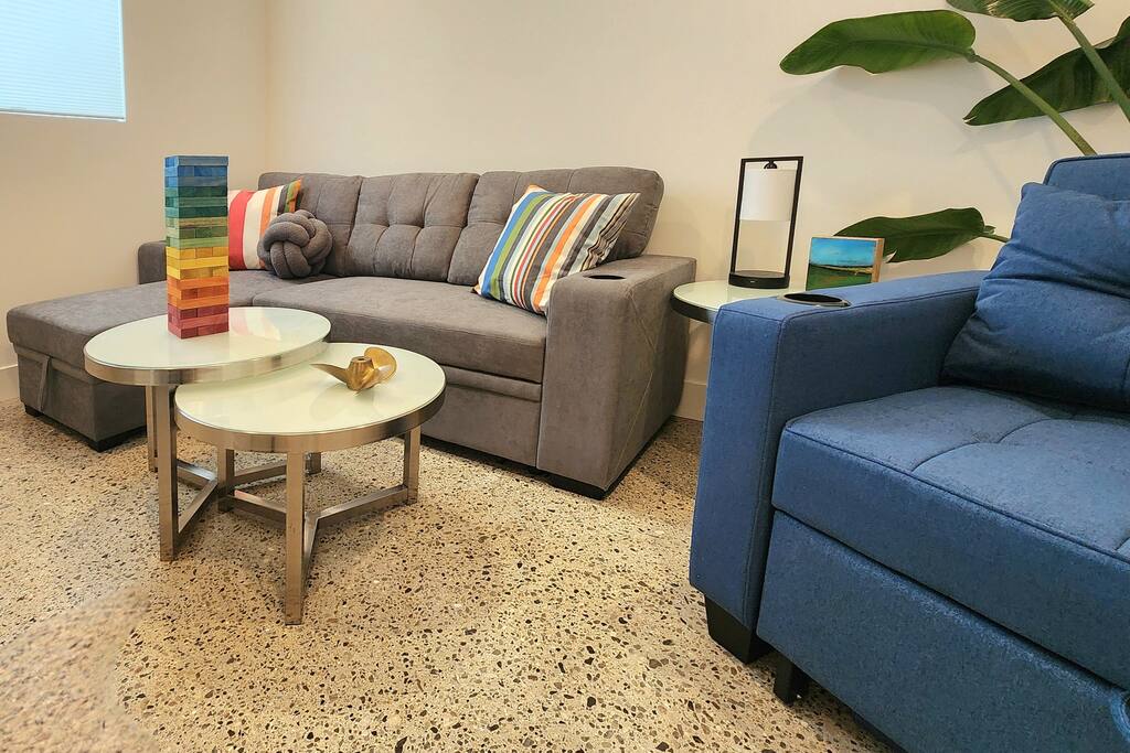 The fifth bedroom doubles/triples/quadruples as a game room, theater room, den, and/or office with a dedicated workspace and a 55" TV for gaming fun. Please bring your own gaming devices! There is a pull-out full sofa bed and pull-out twin chair bed for 2 adults or 2-3 small kids. We REALLY enjoy this space as a place to send the kids, focus on work when you need to, or to have a private conversation away from the rest of the crew!