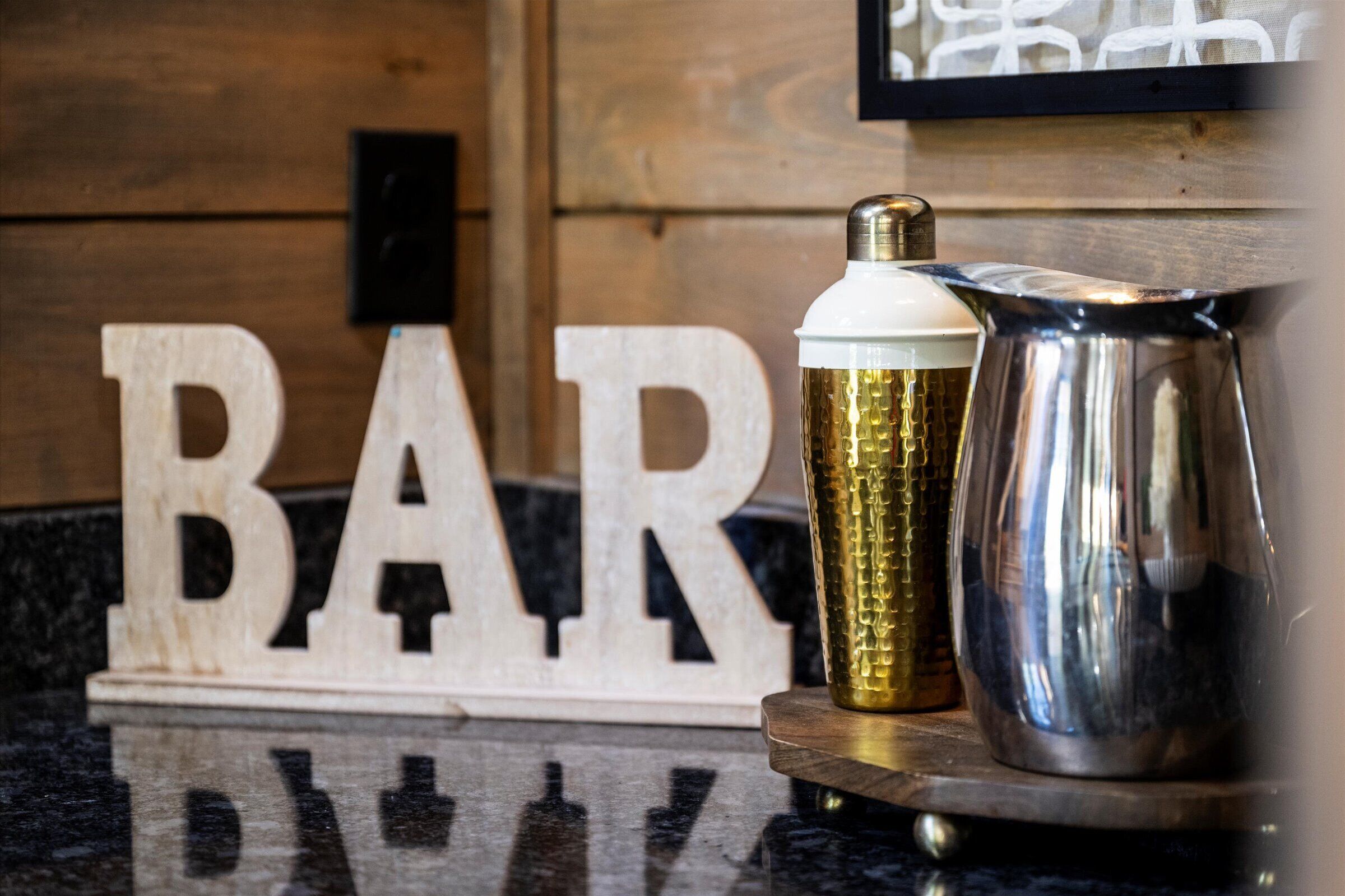 Cook and gather with ease in the fully equipped kitchen, featuring stainless steel appliances, granite countertops, and cookware for group dining. Enjoy meals at the large dining table or breakfast bar, both offering beautiful wooded and mountain views.