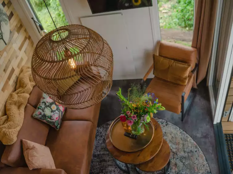 Maurik 10 km from Tiel: Holiday development "MarinaPark Bad Nederrijn", built in 2021. Outside the resort, 2 km from the centre of Maurik, on the lake. For shared use: children's playground (slide, swing, sandbox). In the complex: reception, restaurant, WiFi, laundry. Central parking spaces. E-charging station. Supermarket 2 km, café 1.1 km, bicycle rental 1.2 km, 20 minute walk to the centre, bus stop "Cafe van Dijk" 1.1 km, sandy beach 50 m. Sports harbour 50 m, marina 50 m, golf course (27 hole) 7.1 km, sailing school, tennis 5 km, fishing possibilities. Nearby attractions: Ouwehands Dierenpark 22 km, Belmonte Arboretum 26 km, GeoFort 36 km, Utrecht 45 km, Nijmegen 45 km, Nationaal Park de Hoge Veluwe 49 km. Please note: car recommended. Entertainment in the season. Groups of teenagers on request only. Fishing [permit required]. The photograph shows a typical example. Additional accommodations can be booked. All houses/apartments are individually designed/furnished. The holiday properties may differ in situation, size and location. Special location request for a fee of EUR35,-. Mobile air conditioning on request, costs € 15 per day."Tiny River House", 2-room house 18 m2. Comfortable furnishings: living/dining room with TV (flat screen). Exit to the terrace. Small, open kitchen (2 hot plates, kettle, electric coffee machine, Capsules for coffee machine (Nespresso) extra). Shower/WC. Heating. Upper floor: (steep stair), 1 room with 1 double bed. Terrace. Terrace furniture. View of the lake. Facilities: Internet (WiFi, free). Parking (1 car). Please note: non-smokers only. Maximum 2 pets/ dogs allowed. Smoke alarm.