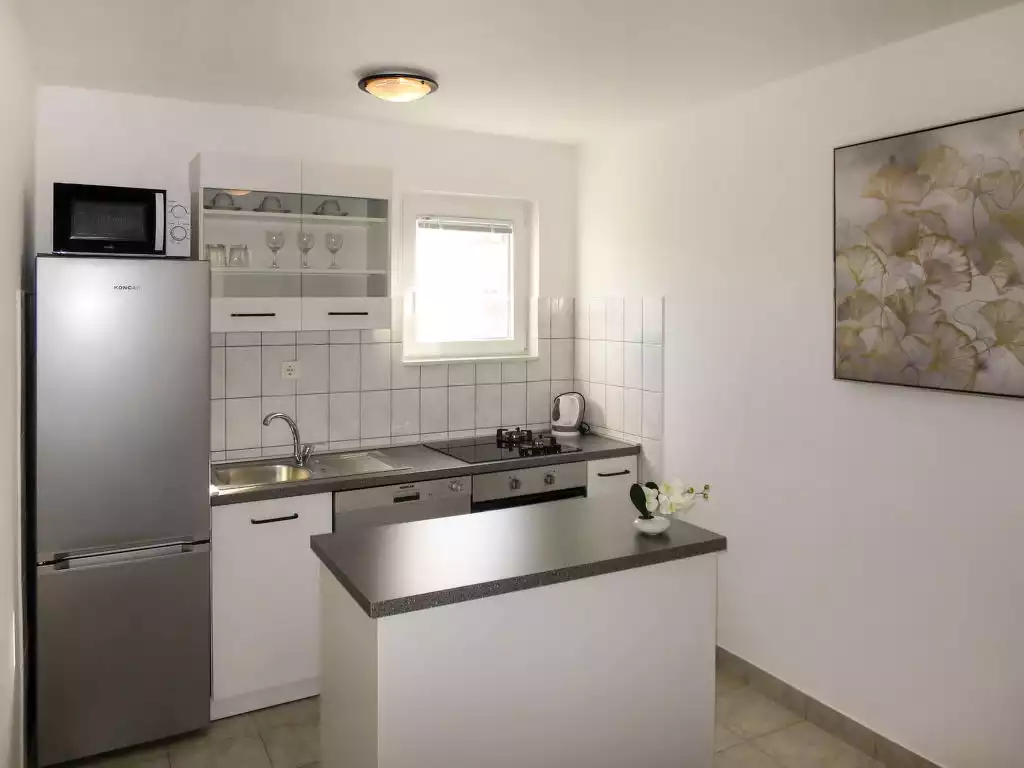 Single-family house "Tone", 2 storeys. 700 m from the centre of Privlaka, in a sunny position, 400 m from the sea, 400 m from the beach. Private: property 200 m2, lawn 80 m2. Garden furniture, barbecue. In the house: internet access, washing machine (extra). Parking (for 2 cars) at the house on the premises. Shop 200 m, supermarket 650 m, restaurant 400 m, café 650 m, bus stop 2.7 km, pebble beach 400 m. Please note: suitable for families. The owner lives on the same property. Airfield 32 km from the property.3-room house 65 m2 on 2 levels. Partly renovated in 2023, cosy furnishings: 1 room with 1 french bed (160 cm, length 200 cm). Open kitchen (oven, dishwasher, 2 ceramic glass hob hotplates, 2 gas rings, toaster, kettle, microwave, freezer, electric coffee machine) with dining table, satellite TV and air conditioning. Shower/WC. Upper floor: (exterior staircase) living room with 1 double sofabed (130 cm, length 200 cm), satellite TV and air conditioning. 1 room with 1 french bed (160 cm, length 200 cm). Small, open kitchen (2 hot plates, kettle, electric coffee machine). Shower/WC. No heating option. Balcony 4 m2, terrace 10 m2, roofed. Terrace furniture. Facilities: baby cot. Internet (WiFi, free).