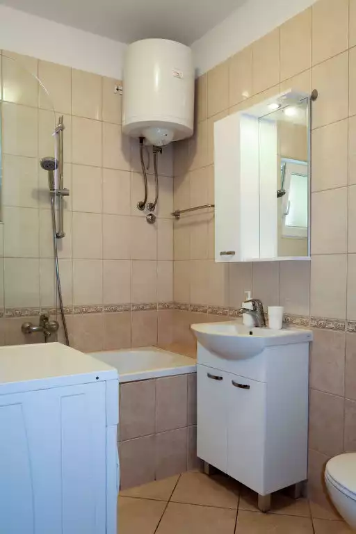 Apartment block "Toni". 350 m from the centre of Grebaštica, 13 km from the centre of Primošten, 15 km from the centre of Šibenik, 350 m from the sea, 350 m from the beach. For shared use: property 500 m2. Barbecue. In the house: internet access. Narrow motor access to the house. Parking on the premises. Shop 350 m, supermarket 9 km, bus stop 650 m, rocky beach 350 m."Toni", 3-room apartment 60 m2 on 1st floor. Living/dining room with 1 sofabed, satellite TV and air conditioning. Exit to the balcony. 2 rooms, each room with 1 double bed. Open kitchen (2 hot plates, oven, dishwasher, 2 gas rings, toaster, kettle, freezer, electric coffee machine). Bath/WC. No heating option. Balcony 18 m2. Balcony furniture, deck chairs (2). Partial view of the sea. Facilities: washing machine. Internet (WiFi, free).