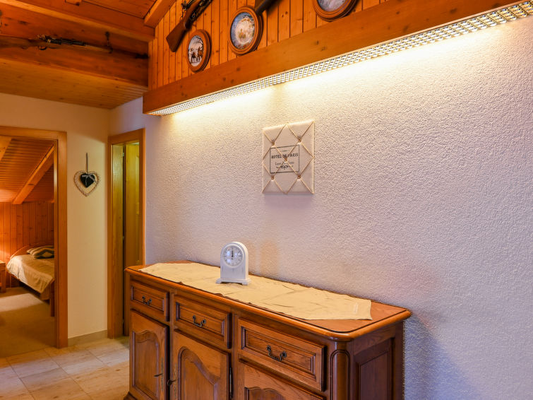 Apartment house "Tourbillon A et B". Above Ovronnaz, in the district of Tourbillon, in a quiet, sunny position, south facing position. In the house: lift, storage room for skis, central heating system, washing machine, tumble dryer (extra). Motor access to the house. Parking. Grocery 800 m, restaurant, bus stop 100 m, thermal baths 1 km. Tennis 100 m, skisport facilities 1 km, cross country ski track 600 m. Please note: car recommended. Additional accommodations can be booked. A lift is available in the building "Tourbillon A"."Tourbillon B 31", 4-room apartment 86 m2 on 3rd floor, south facing position. Practical and comfortable furnishings: living/dining room with open-hearth fireplace and cable TV. Exit to the balcony. 1 room with 1 double bed (160 cm, length 200 cm). 1 room with 1 bed (90 cm, length 200 cm). 1 room with 2 beds (90 cm, length 200 cm). Exit to the balcony. Open kitchen (4 ceramic glass hob hotplates, toaster, kettle, microwave, electric coffee machine, Capsules for coffee machine (Nespresso) extra, raclette grill, fondue Set (chinoise, cheese)). Bath/WC, sep. WC. Large balcony, south facing position. Balcony furniture. Panoramic view of the mountains. Facilities: washing machine, dryer, hair dryer. Internet (Dial up/ISDN). Parking (1 car).