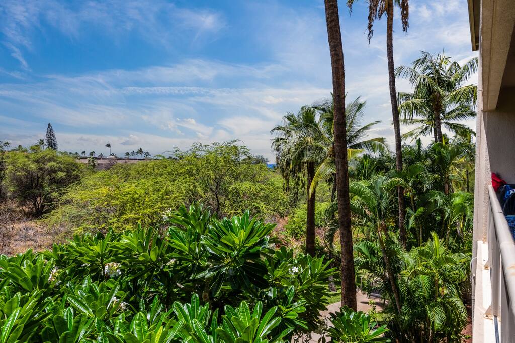 Our condo is on the "quiet" side of the resort, away from the traffic noise of South Kihei Rd and the parking lots of the resort. Imagine watching the sunrise over Haleakala each morning and enjoying a peak-a-boo ocean view from the extended large lanai.