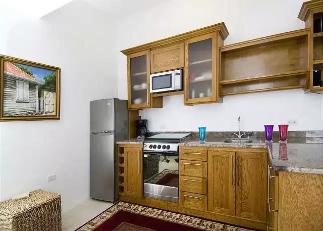 The villa was designed to take advantage of the sultry, soft trade winds with the main dining/living area opening up completely to the outdoors. Comfort and elegance with a Caribbean flair is the theme throughout the villa and continuous on with the Mediterranean style terrace with arched colonnades. The main level includes a spacious living area, state-of-the-art custom kitchen, dining area with oversized island, bar area with beer fridge and ice maker and a full bathroom. The fully equipped kitchen will compliment any discerning chef. Dine alfresco on the oversized terrace overlooking the pool. Relax, unwind and plug & play your Smart Phone to listen to your favourite music on the indoor & outdoors surround sound stereo system……..the villa also offers Free WiFi and the use of an island cell phone.