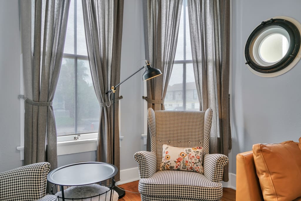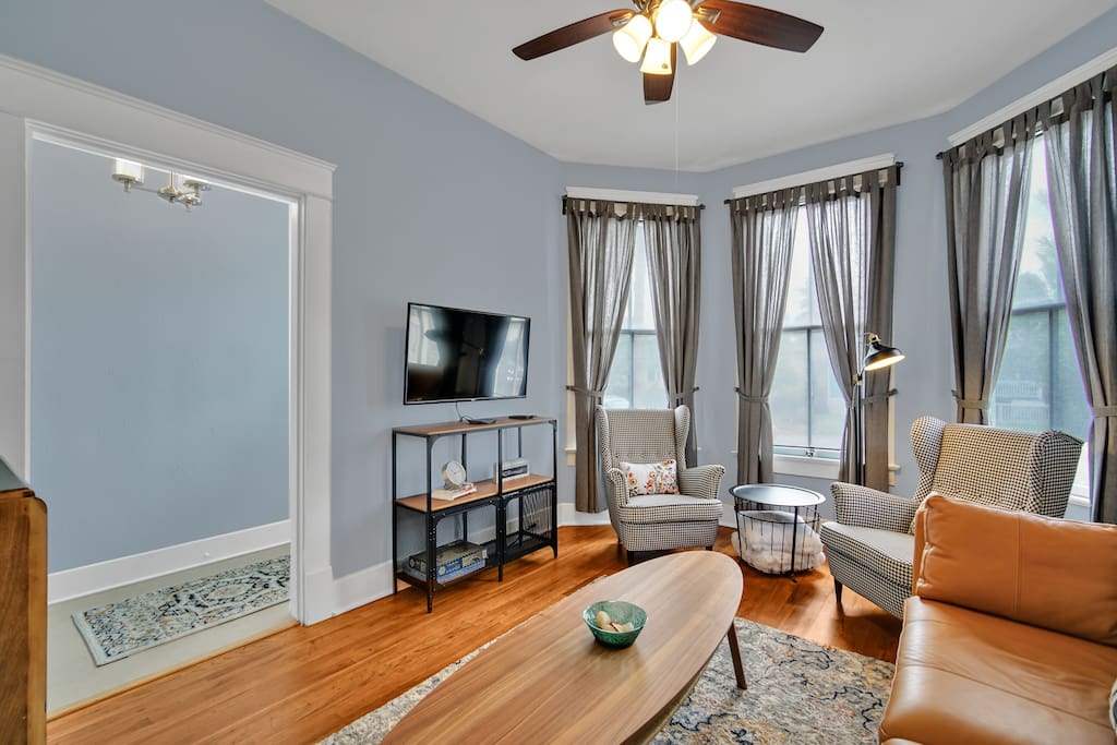 The home is one story, but elevated, and you will need to climb 5 steps onto the front porch and 3 steps down out of the back door. Two Blocks Inn is managed by MRS Real Estate Properties, LLC.