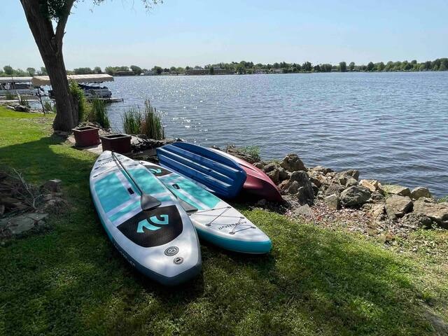 Beautiful and elegant lakefront home with water views from every room. Modern kitchen with quartz countertops. Fireplace for cool nights. Private outdoor 2 person hot tub for relaxing and viewing the lake. Enjoy the colorful sunrise and sunsets from the large deck overlooking the lake. Bring your own boat and dock it for your stay! Paddle boards and kayaks provided!