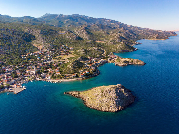 Apartment house "Val 2". 350 m from the centre of Sveti Juraj, in a sunny, elevated position, 300 m from the sea, 300 m from the beach. In the house: internet access. Parking at the house on the premises. Shop 450 m, restaurant 350 m, bus stop 500 m, pebble beach 300 m.2-room apartment 51 m2 on 2nd floor, south facing position. Fully renovated in 2018: living/dining room 20 m2 with satellite TV (flat screen), air conditioning. Exit to the balcony. 1 room with sloping ceilings, ceiling height 185 - 350 cm with 1 double bed (2 x 80 cm, length 200 cm). Exit to the balcony. Open kitchen (dishwasher, 3 ceramic glass hob hotplates, microwave, freezer, electric coffee machine). Shower/WC. No heating option. Balcony 15 m2, balcony 3 m2. Balcony furniture. Marvellous view of the sea. Facilities: washing machine. Internet (WiFi, free).