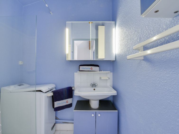 Residence "Val des Chênes", 2 storeys. Outside the resort, 2 km from the centre of Cavalaire Sur Mer, in a quiet, sunny position, 200 m from the sea, 200 m from the beach. For shared use: park 2'000 m2 with lawn and trees. Table tennis, boccia, children's playground, parking. Shop 1.5 km, grocery 300 m, supermarket 2 km, restaurant, bar 300 m, bakery, café 600 m, bus stop "place du parc" 450 m, sandy beach "Marina Viva" 250 m, park "Aqualand" 24 m, diving center 1.7 km. Sports harbour 1.6 km, sailing school 1.6 km, tennis 300 m, minigolf 12 km. Nearby attractions: Azur Park, Paint-ball 12 km, Bowling à Port-Grimaud 13 km, St-Tropez 17 km, Ste-Maxime 24 km. Hiking paths: Sentier du Dattier 8 km, Sentier du littoral 6 km, Toulon 60 km. The keys‘ handover takes place by the agency Interhome in Cavalaire. Access to the sea at 200m, without crossing the street (underground passage).1-room studio 34 m2 on 2 levels on 1st floor. Practical and comfortable furnishings: living/dining room with 1 double sofabed (1 x 140 cm, length 190 cm), TV (flat screen), DVD. Exit to the balcony. Open kitchen (dishwasher, 2 induction hot plates, toaster, kettle, microwave, freezer, grill, electric coffee machine). Sep. WC. Upper floor: 1 open room with sloping ceilings with 1 french bed (1 x 140 cm, length 190 cm). Shower. Electric heating, air-conditioning. Balcony 8 m2. Balcony furniture, deck chairs (2). View of the garden. Facilities: washing machine, hair dryer. Internet (WiFi, extra). Parking space n C-49. Please note: TV only FR. Smoke alarm.