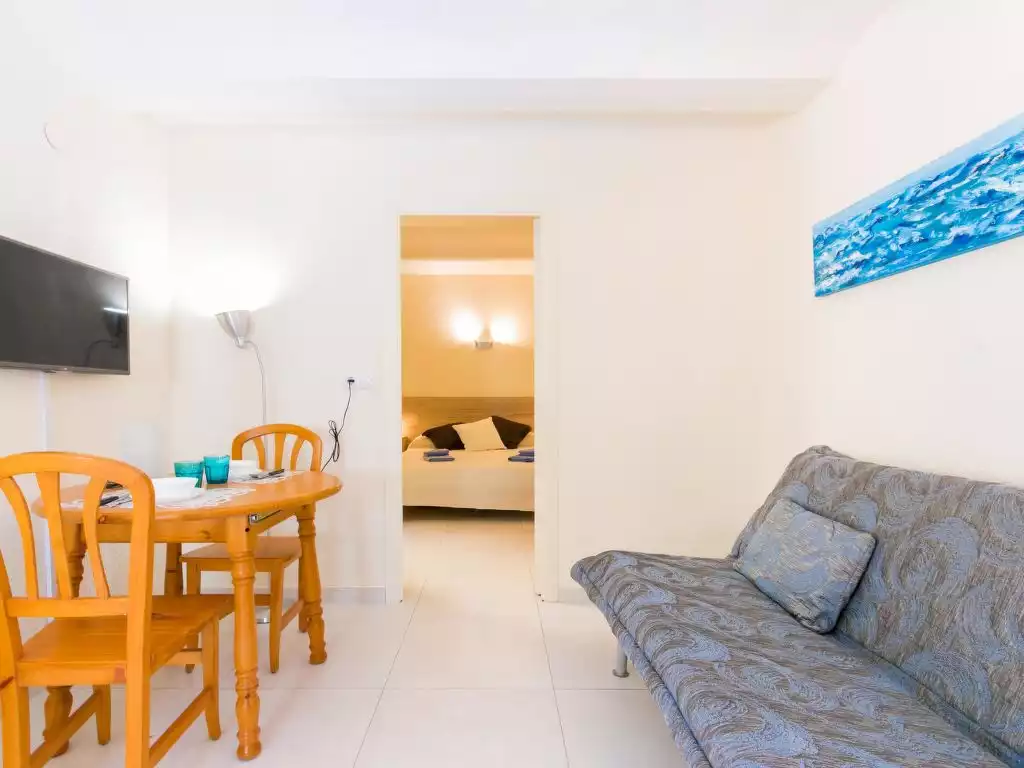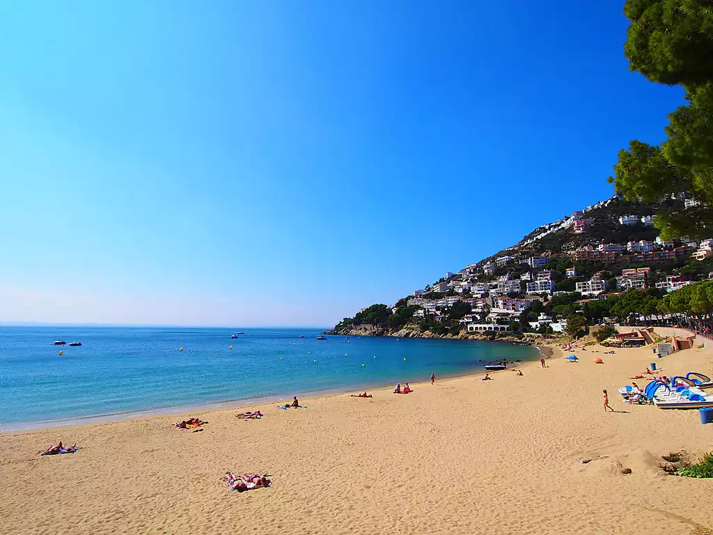 Canyelles Petites: Cosy, simple resort "Velazquez". Canyelles Petites, in the resort 4 km from the centre of Roses, in a quiet, sunny position on a slope, from the sea, 60 m from the beach, road to cross. For shared use: swimming pool angular (10 x 4 m, depth 80 - 180 cm, seasonal availability: 12.May. - 30.Sep.) with internal staircase. In the house: WiFi. Shop 150 m, grocery, supermarket 150 m, restaurant 100 m, bar 20 m, café, pedestrian zone 30 m, bus stop 100 m, sandy beach "Canyelles Petites" 60 m, swimming bay 60 m. Sports harbour 3 km, golf course (18 hole) 24 km, surf school 3 km, sailing school 3 km, tennis 5 km, riding stable 10 km, sports centre 3.5 km. Nearby attractions: Parque Acuático Aquabrava Roses 6 km, Skydive y túnel del viento Empuriabrava 11 km, Cadaqués 18 km, Castillo y casino de Perelada 25 km, Monasterio de Sant Pere de Rodes 24 km, Museo Dalí Figueres 24 km. Please note: the keys‘ handover takes place by the agency Interhome in Roses. Additional accommodations can be booked. The apartments are built on terraced land and set on a hillside. The apartments' terraces are intercommunicated so there is little privacy. Access to the individual apartments and the swimming pool down some steps. The apartments are situated 60 m from the Canyelles Petites beach, one of the most beautiful beaches in the Costa Brava. Please note: The residence requests no noise after 23:00 hrs. Exception: ES9410.383.1, with terrace and private entrance. Available private garage in all apartments except the es9410.383.3 Pease note : apartments without heating.2-room apartment 30 m2. Very simple furnishings: small living/dining room with TV. 1 small room with 2 beds (90 cm, length 190 cm). Open kitchen (2 ceramic glass hob hotplates, microwave, freezer, electric coffee machine). Shower/WC. No heating option. Terrace furniture. Facilities: washing machine. Internet (WiFi, free). Please note: non-smokers only, no parking. TV only ES. No lift. Interior apartment.Shared terrace space without views . NO PARKING . NO heating. HUTG007511