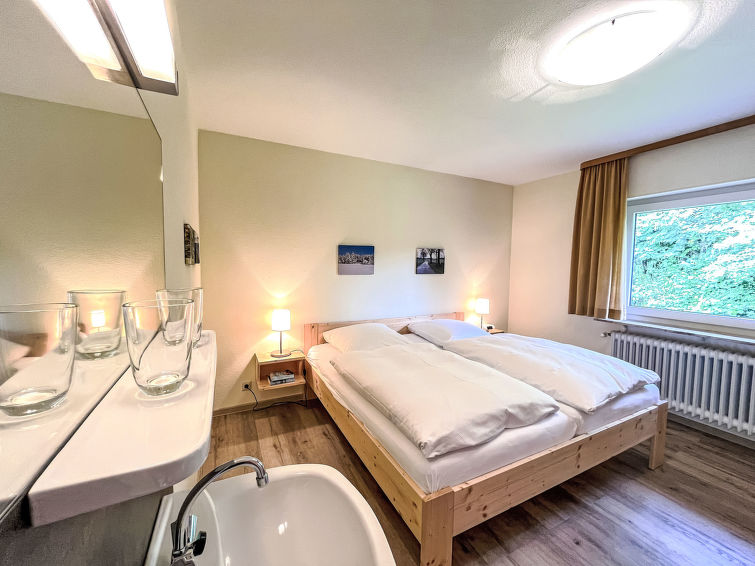 Cosy single-family house "Vergissmeinnicht". On the outskirts, 300 m from the centre, in a quiet position. In the house: central heating system. E-charging station. Supermarket 3 km, restaurant 300 m, bakery 4 km, bus stop 300 m, railway station "Löffingen" 5 km, outdoor swimming pool 1 km, indoor swimming pool 600 m, bathing lake "Kirnbergsee" 5 km. Golf course (18 hole) 20 km, cross country ski track 300 m. Nearby attractions: Freiburg 45 km, Donaueschingen 20 km, Freizeitpark und Zoo Tatzmania 3.5 km. Well-known ski regions can easily be reached: Feldberg 35 km. Well-known lakes can easily be reached: Titisee 23 km, Schluchsee 39 km. Hiking paths: Schwarzwald, Feldberggebiet 35 km, Wutachschlucht 12 km.3-room house 68 m2. Rustic and cosy furnishings: living/dining room with satellite TV (flat screen), CD-player. Exit to the garden, to the terrace. 1 room with 2 beds (90 cm, length 200 cm). 1 room with 1 double bed (2 x 100 cm, length 200 cm), hand-basin. Kitchen (oven, dishwasher, toaster, kettle, microwave, electric coffee machine). Bath/WC. Terrace. Terrace furniture, deck chairs (4). Facilities: telephone, iron, children's high chair, baby cot, hair dryer. Internet (WiFi, free). Parking, garage. E-charging station. Please note: non-smoking house. Smoke alarm. DAB radio. Electric car charging station Wallbox, 11 kw consumption included in the price. Bookings accepted for holiday purposes only.