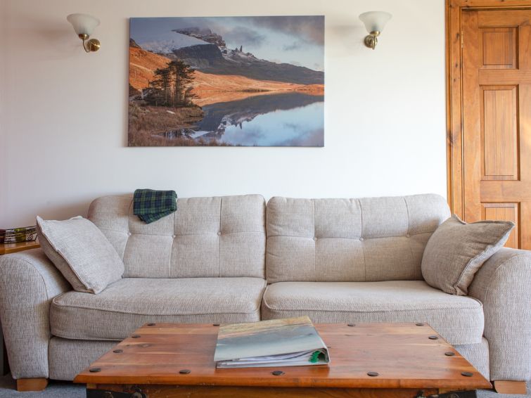 Beautiful, comfortable cottage "Viewfield", detached. 10 m from the sea. Private: garden. Patio, parking at the house. Shop 1 km, supermarket 1400 km, bus stop "Portree High School" 100 m, ferry "Uig" 24 km. Golf course (18 hole) 22 km, sailing school 2 km, riding stable 17 km. Nearby attractions: The Aros Centre 1 km, Ashaig Beach 46 km, Isle of Raasay 26 km, Sleat Peninsula 46 km.4-room house 112 m2 on 2 levels. Spacious and bright, comfortable and cosy furnishings: living room with digital TV and wood-burning stove. 1 double bedroom with 1 double bed, hand-basin, shower/WC and TV (flat screen). Kitchen (4 hot plates, oven, dishwasher, microwave, freezer) with dining table. Shower/WC. Upper floor: 1 room with 1 double bed, hand-basin, shower/WC and TV (flat screen). 1 room with 2 beds, hand-basin, shower/WC and TV (flat screen). Patio, garden. Terrace furniture, barbecue. Very beautiful panoramic view of the sea. Facilities: washing machine, dryer, children's high chair, baby cot for up to 2 year olds. Internet (WiFi, free). Please note: non-smoking house. TV only EN. The Annex can be rented at an additional cost and sleeps another two pax. The Annex has a double bedroom, TV and shower/WC. HI-30080-F