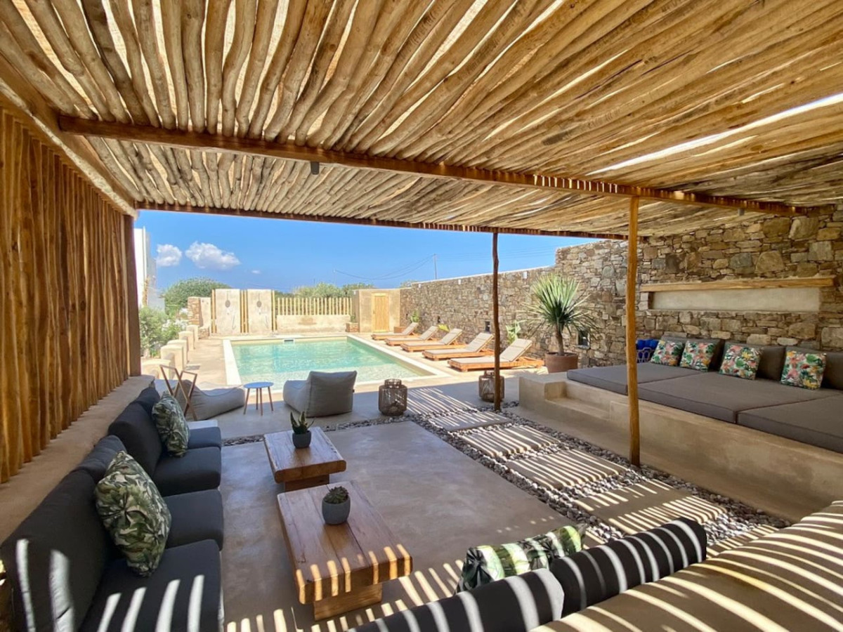 Newly built, Villa Aetheria offers a luxurious and comfortable stay for up to 10 guests. Constructed with local stone and white plaster, the villa blends harmoniously into its natural surroundings, paying homage to the island’s traditional architecture.