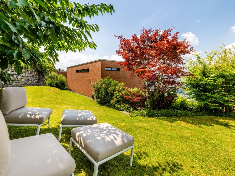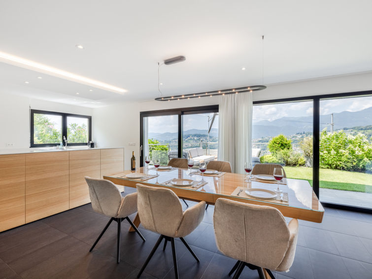 Davesco-Soragno 5 km from Lugano: Child friendly single-family house "Villa Girandola", 2 storeys, surrounded by trees and meadows. On the outskirts, in a quiet, sunny, elevated position residential area (villas), 30 m from the edge of the forest, in a cul-de-sac, west facing position. Private: property, lawn for sunbathing, beautiful garden to relax, swimming pool angular, heated (depth 100 - 140 cm, seasonal availability: 01.Apr. - 30.Sep.) with internal staircase and shutter cover. Patio, terrace, garden furniture, barbecue. In the house: WiFi, central heating system, washing machine, tumble dryer. Motor access to the house. Parking (for 2 cars) at the house. Bus stop "Soragno" 500 m, railway station "Lugano" 6 km. Nearby attractions: Swissminiatur, Melide, Spash and Spa, Rivera, Foxtowm, Medrisio. Well-known ski regions can easily be reached: Airolo, Nara, Campo Blenio. Well-known lakes can easily be reached: Lago di Lugano, Lago di Como, Lago Maggiore. Please note: car recommended. Suitable for families.4-room villa on 2 levels, south-west facing position. Spacious and bright, partly renovated in 2022, comfortable and modern furnishings: large living/dining room with dining table, cable TV, international TV channels, flat screen, radio and hi-fi system. Exit to the terrace, to the patio. Open kitchen (oven, dishwasher, 5 induction hot plates, toaster, kettle, microwave, electric coffee machine, Capsules for coffee machine (Nespresso) extra, steamer). Sep. WC. Underfloor heating. Upper floor: 1 double bedroom with 1 double bed (2 x 90 cm, length 200 cm), shower/WC. 1 double bedroom with 1 double bed (2 x 90 cm, length 200 cm). 1 double bedroom with 1 double bed (2 x 90 cm, length 200 cm), cable TV and international TV channels (flat screen). Shower/WC. Large terrace. Terrace furniture, deck chairs (4), sitting area. Marvellous panoramic view of the mountains, the countryside and the resort. Facilities: children's high chair, baby cot for up to 2 year olds, hair dryer. Please note: non-smoking house. Fire extinguisher. Please note: No pets, - Video on Demand. Wine cooler with 1 temperature zone (white and red wine) newly integrated into the kitchen. NL-00007199
