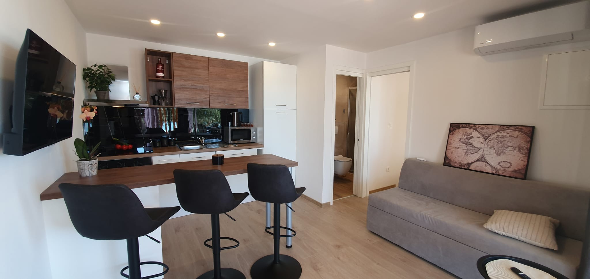 Welcome to our brand-new house in the Vortex Green camp! Our house is located on the first line to the Adriatic Sea, offering an amazing view of the quiet bay. The house is perfect for groups of 4, with 2 bedrooms and 2 bathrooms. It is fully furnished and equipped with everything you need to make your stay comfortable. Built in 2023, our house is modern and stylish, with all the amenities you need to enjoy your vacation.
