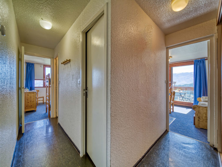 Apartment house "Vostok Zodiaque", 17 storeys. 150 m from the centre of Corbier, 100 m from the skiing area. For shared use: swimming pool heated (25 x 12 m, depth 90 - 200 cm, seasonal availability: 13.Dec. - 10.Apr. and 27.Jun. - 28.Aug. pool opening hours: 10:00-19:00). In the complex: lift, storage room for skis. Public parking 30 m. Shop, grocery, restaurant 50 m, bar 100 m, bus stop "Centre-Bagagerie" 250 m, railway station "St Jean de Maurienne" 17 km, outdoor swimming pool 100 m. Ski lift, chair lift, slopes, ski school 100 m, ski-kindergarten 50 m, sled run 100 m. Please note: Additional accommodations can be booked. The swimming pool facilities are 100 m from the residence at the municipal pool. Entrance for under 3’s is not allowed. Children between 3 and 5 years old are allowed subject to weather conditions (in winter). Entrance tickets to the swimming pool are included in your rental price and will be given to you when you check in.2-room apartment 33 m2 on 16th floor, north-east facing position. Very simple furnishings: living/dining room with 1 pull-out bed (2 pers. 2 x 80 cm, length 190 cm), TV (flat screen), DVD. Exit to the balcony. 1 room with 1 bed (80 cm, length 190 cm), 1 x 2 bunk beds (80 cm, length 190 cm). Kitchenette (2 hot plates, oven, toaster, microwave, electric coffee machine, Capsules for coffee machine (KRUPS) extra). Bathroom, sep. WC. Electric heating. Carpet. Balcony 5 m2, east facing position. View of the mountains and the ski run. Facilities: iron, hair dryer. Internet (WiFi, extra). Please note: smoke alarm. Offer by a private individual according to Art. 155, IV of CGI. G16 06