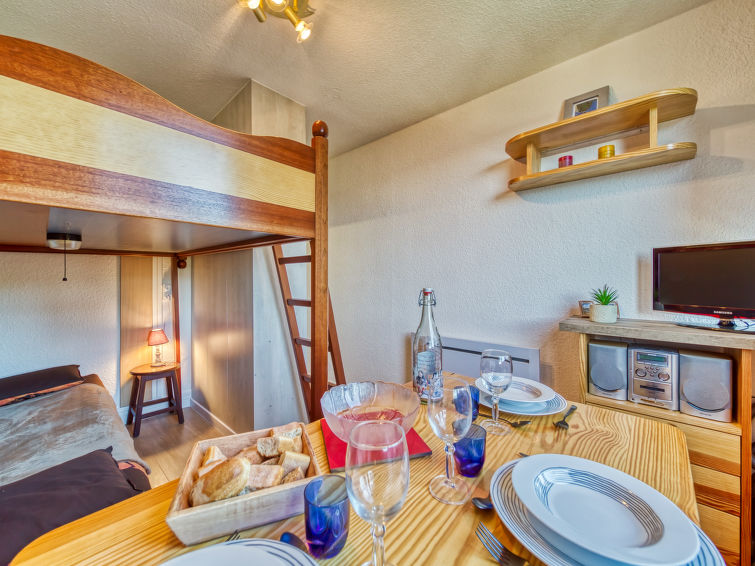 Apartment house "Vostok Zodiaque", 17 storeys. 150 m from the centre of Corbier, 100 m from the skiing area. For shared use: swimming pool heated (25 x 12 m, depth 90 - 200 cm, seasonal availability: 13.Dec. - 10.Apr. and 27.Jun. - 28.Aug. pool opening hours: 10:00-19:00). In the complex: lift, storage room for skis. Public parking 30 m. Shop, grocery, restaurant 50 m, bar 100 m, bus stop "Centre-Bagagerie" 250 m, railway station "St Jean de Maurienne" 17 km, outdoor swimming pool 100 m. Ski lift, chair lift, slopes, ski school 100 m, ski-kindergarten 50 m, sled run 100 m. Please note: Additional accommodations can be booked. The swimming pool facilities are 100 m from the residence at the municipal pool. Entrance for under 3’s is not allowed. Children between 3 and 5 years old are allowed subject to weather conditions (in winter). Entrance tickets to the swimming pool are included in your rental price and will be given to you when you check in.1-room studio 16 m2 on 3rd floor. Renovated in 2023, beautiful furnishings: living/sleeping room with 1 double sofabed (140 cm, length 190 cm), TV (flat screen), hi-fi system. Kitchenette in the entrance (2 induction hot plates, toaster, kettle, microwave, electric coffee machine). Shower/WC. Electric heating. Parquet floors. North facing position. View of the valley. Facilities: hair dryer. Internet (WiFi, extra). Please note: non-smokers only. Smoke alarm. Offer by a private individual according to Art. 155, IV of CGI.