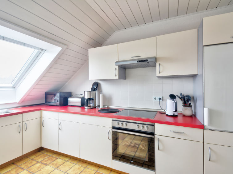 Beautiful, comfortable 2-family house "Waldvogt". In the district of Lothe 4 km from the centre of Schwalenberg, in a quiet position, 500 m from the edge of the forest. For shared use: well-kept garden 100 m2 with lawn. In the house: storage room for bicycles, central heating system, washing machine (for shared use, extra). Parking at the house. Shop 5 km, grocery 4 km, supermarket 5 km, restaurant 200 m, bakery 400 m, café 4 km, bus stop "Steinheimer Strasse" 200 m, railway station "Steinheim" 6 km, indoor swimming pool 5 km. Walking paths from the house 200 m. Nearby attractions: Externsteine 25 km, Hermannsdenkmal 26 km, Welterbe Corvey 28 km. Well-known lakes can easily be reached: Schiedersee 6 km. Please note: car recommended.2-room apartment 90 m2, on the top floor. Cosy furnishings: living/sleeping room 51 m2 with 1 sofabed (90 cm, length 200 cm), 1 folding bed (90 cm, length 200 cm), dining nook and satellite TV (flat screen), CD-player. Exit to the balcony. 1 room 19 m2, with sloping ceilings with 1 double bed (180 cm, length 200 cm). Exit to the balcony. Kitchen (oven, dishwasher, 4 ceramic glass hob hotplates, microwave, electric coffee machine). Bath/shower/bidet/WC. Underfloor heating. 2 balconies 10 m2. Balcony furniture, box-room. View of the garden and the resort. Facilities: iron, children's high chair (extra), hair dryer. Internet (WiFi, free). Please note: non-smokers only. Smoke alarm, fire extinguisher. Decorative fireplace. The two balconies are covered.