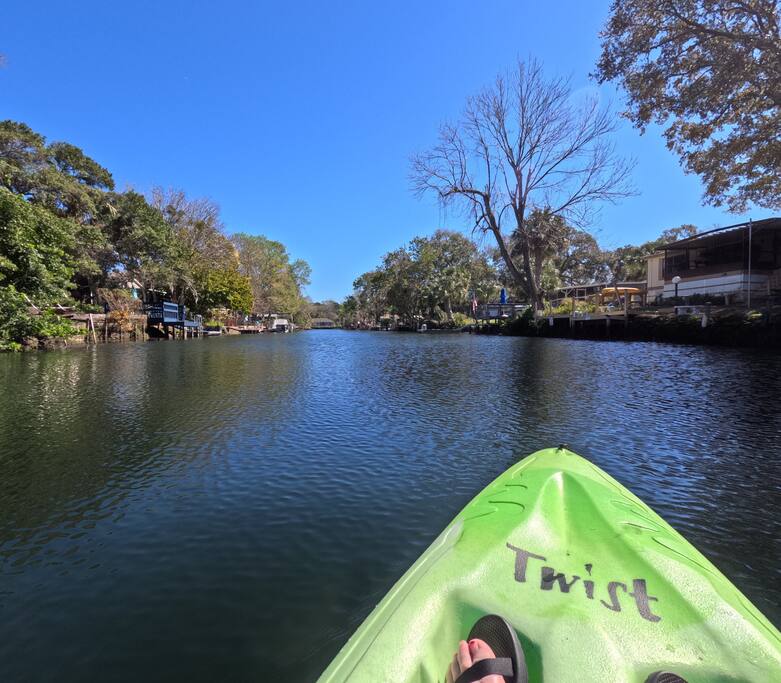 Our waterfront home is the perfect place for friends and family to unwind. Relax on the deck or screened patio and watch the manatees play! Plenty of room for swimming, boating, and fishing from the 75-foot dock. This unique location has freshwater AND saltwater fish (bass, bluegill, snook, etc.). Visit the pristine sand bar where the canal meets the crystal clear Weeki Wachee River, which often has a floating concession stand! Enjoy the large yard filled with tropical flowers and fruit trees!Weeki Mermaid Retreat is a super clean, modern, 3-bedroom 2-bath fully furnished home in a quiet neighborhood surrounded by Florida’s untouched wilderness. The split floor plan can easily accommodate 8 (with two on a foam floor matress in the den). With a Florida room overlooking the water, a separate den, a screened patio, attached deck, and 75-foot dock, our guests have plenty of room to spread out relax. WiFi is great for internet and gaming. Roku equipped flatscreen TV's are located in all bedrooms, living room and the Florida room.