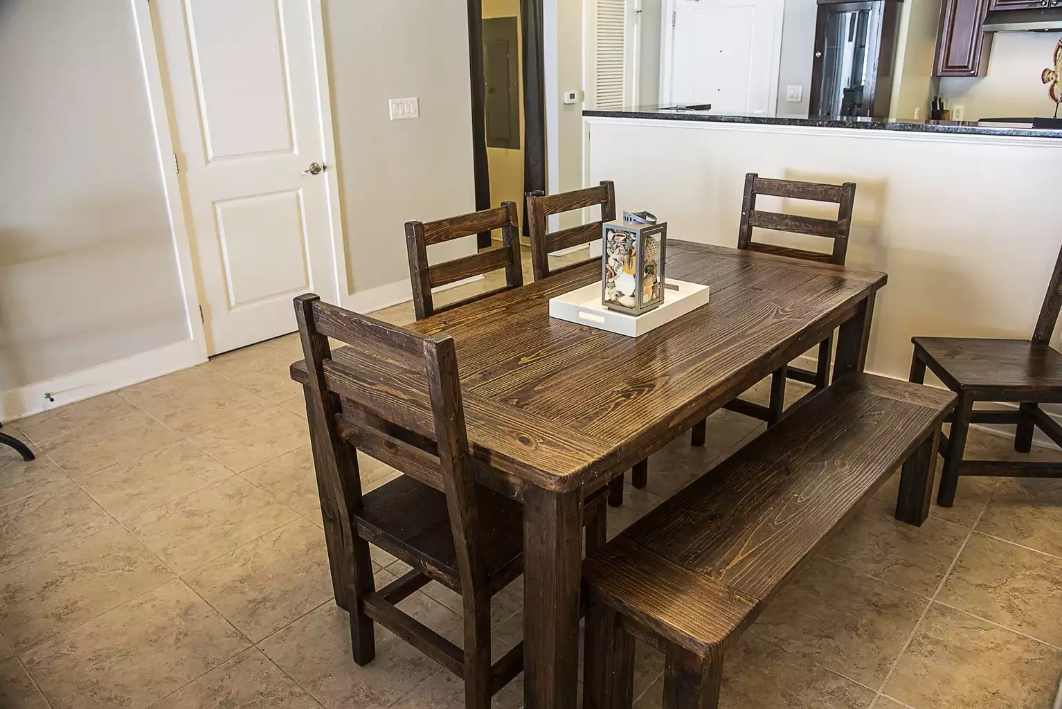 Welcome to our vacation rental at Waterscape! Our ground floor, two bedroom condo is perfect for families or groups of up to eight people, with its spacious bunk room and two and a half bathrooms. Located just a few doors down from the pool and beach access, you’ll be able to enjoy all the amenities Waterscape has to offer with ease. This includes multiple pools for all ages, a lazy river, two hot tubs, and an exercise facility, all surrounded by 490 feet of white sandy beach. Beach service is included with your stay, so you can relax and soak up the sun without a worry. Our vacation rental is veteran owned and managed, and we provide added conveniences like a Pack ‘n Play and high chair for our young guests. Our unit is handicapped accessible to meet everyone's needs. Parking is a breeze with our covered parking just steps away. Book your stay at our Waterscape condo and experience the ultimate family-friendly, resort-like atmosphere.