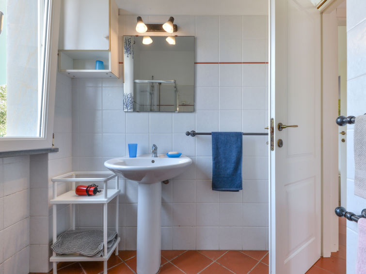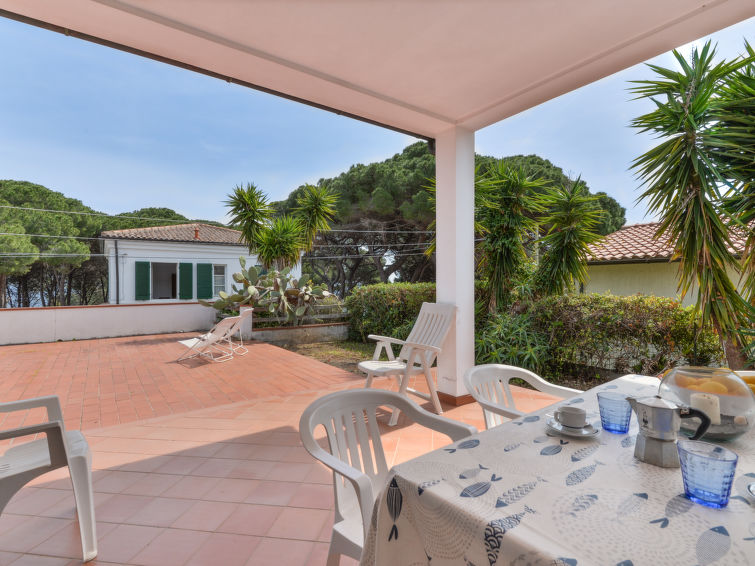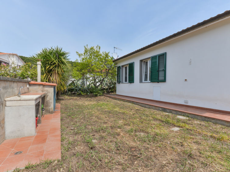 Small, cosy house "Wendy". 600 m from the centre of Cavo, in the residential district, 130 m from the sea. Private: property 250 m2, natural garden. Outdoor shower. Stepped path (15 steps) to the house. Public parking 5 m on the road. Supermarket 700 m, bus stop 1.6 km, ferry "Cavo" 800 m, sandy beach "Frugoso" 250 m pebble beach 130 m. Nearby attractions: Cala delle Alghe 250 m, Rio Marina 8 km, Portoferraio 30 km. Please note: Loading and unloading of baggage is possible at the holiday house.3-room house 50 m2, on the ground floor. Practical and cosy furnishings: living/dining room with dining nook, satellite TV and electric heater. Exit to the terrace. 1 double bedroom. 1 room with 2 beds. Small, open kitchen (oven, 4 gas rings, freezer). Exit to the terrace. Shower/bidet/WC. No heating option. Terrace 16 m2, roofed, large terrace 80 m2. Terrace furniture, deck chairs (4). Facilities: washing machine, children's high chair, baby cot for up to 2 year olds. Please note: non-smokers only. Maximum 1 pet/ dog allowed. Private entrance. No mandatory extra charges to be paid on-site. IT049021C2Y48WFY7M
