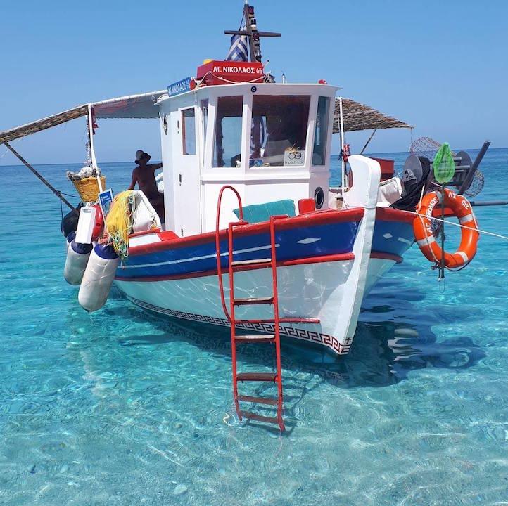 Yiannis and Costas picked us up at Kanapitsa Beach and ferried us to wonderful spots around the island. We soon noticed, that this was not your average tourist excursion, no blaring Mamma Mia (ABBA) music, and no other boats anchoring in the bays they took us to.