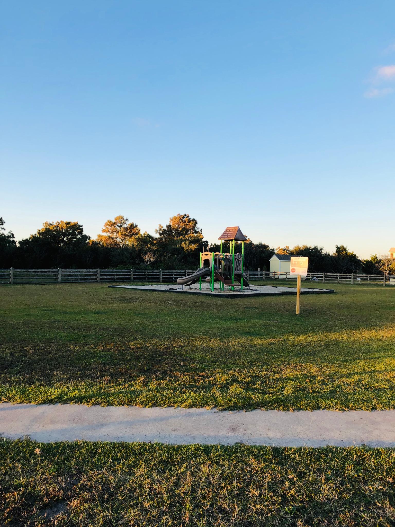 At the park there is a place to put your kayak in, a small pier to fish in the canal, a small playground for kids, a pavilion, park grills, bathroom facilities including outdoor showers, volleyball net and a place to play horseshoes. See pictures below.