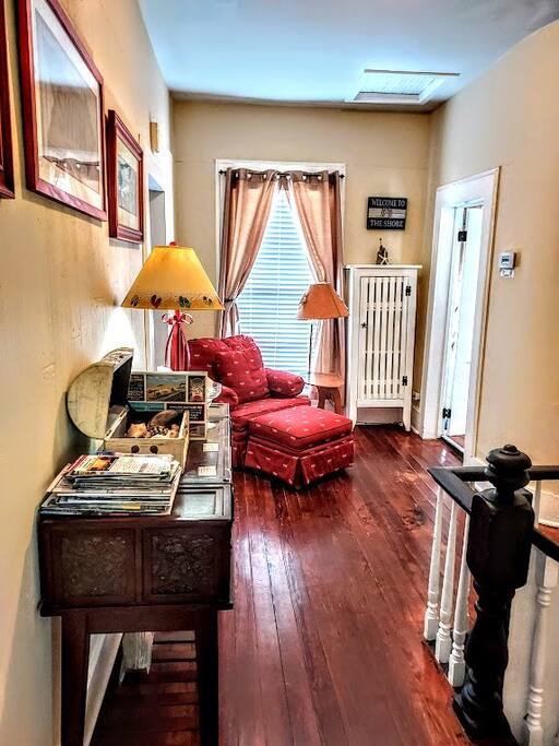 Colonial style home in Historic Brunswick built in 1928 that was made into a triplex (3 separate units). 2 of the 3 units are vacay units & 1 is a long term tenant. Each apt has its own entry from the open front porch, & you have your own sitting area. Downtown festivities, restaurants & entertainment <5 mins & conveniently located between Jekyll & St Simons Islands & their beaches < 20 mins away. This large apt is the upstairs 3 bedrooms of the original house with a bathroom & landing. Nice historic neighborhood near restaurants & entertainment!