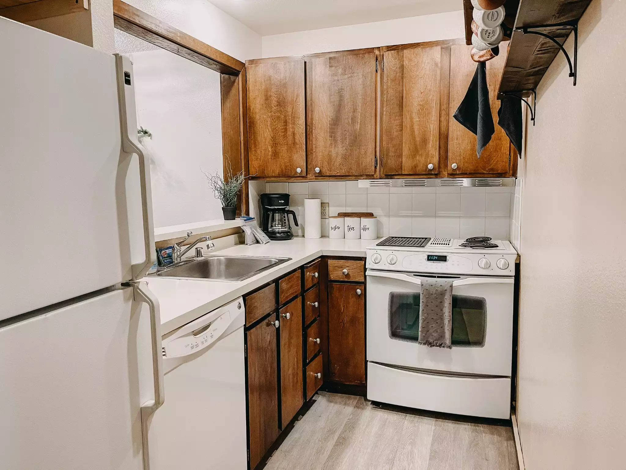 A Perfect Family Getaway! Your family will have a very enjoyable experience while staying in this 2-story, 2-bedroom, 1 ½-bath townhouse style condominium. The main floor features an open living/dining area with vaulted ceilings, a wood burning fireplace, (firewood not provided) a hide-a-bed sofa, and large windows with an easterly exposure offering great territorial mountain views, plus there’s a nice walkout balcony for enjoying your favorite morning and evening beverages. A fully equipped galley style kitchen with a pass through flanks the living/dining area, and one bedroom with 1-queen sized bed, a flat screen monitor, and a ½-bath ensuite complete the main floor. Ascending the staircase to the top floor reveals a loft bedroom with 1-queen sized bed and a flat screen monitor, 1-full bath, and a laundry cubby with a stack washer/dryer. This tastefully furnished, WIFI equipped, and monitored family vacation property will sleep 4 to 6-persons (ENFORCED Maximum Occupancy!).