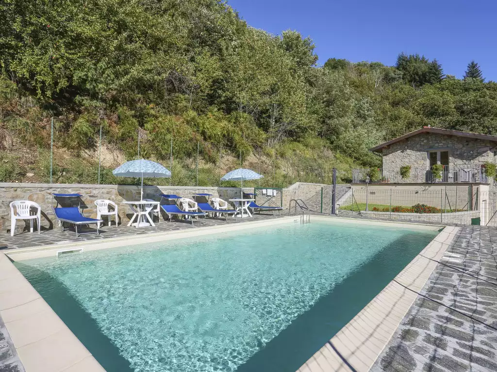 Corfino 12 km from Silano: Rustic, simple house "Al Faggio", renovated in 2019, surrounded by trees and meadows. 12 km from the centre of Sillano, 6 km from the centre of Corfino, 22 km from the centre of Castelnuovo di Garfagnana, in a quiet position on a slope, in a cul-de-sac, in the countryside, in the woods. Private: property 500 m2, terraced garden with wildlife garden and trees, meadow, parking on the premises. Shop 6 km, bus stop 6 km, indoor swimming pool 15 km."Al Faggio (GLL120)", 4-room house 70 m2. Rustic and wooden furniture furnishings: living/dining room with open-hearth fireplace, dining nook and satellite TV. 2 double bedrooms. 1 room with 1 x 2 bunk beds. Small, open kitchen (oven, Gas stove, 4 gas rings, toaster). Shower/WC, sep. WC. Heating. Terrace partly roofed, patio. Terrace furniture, barbecue, deck chairs (3). Facilities: iron. Internet (WiFi, free). Please note: non-smokers only. Maximum 2 pets/ dogs allowed. IT046027C2369H2YK5