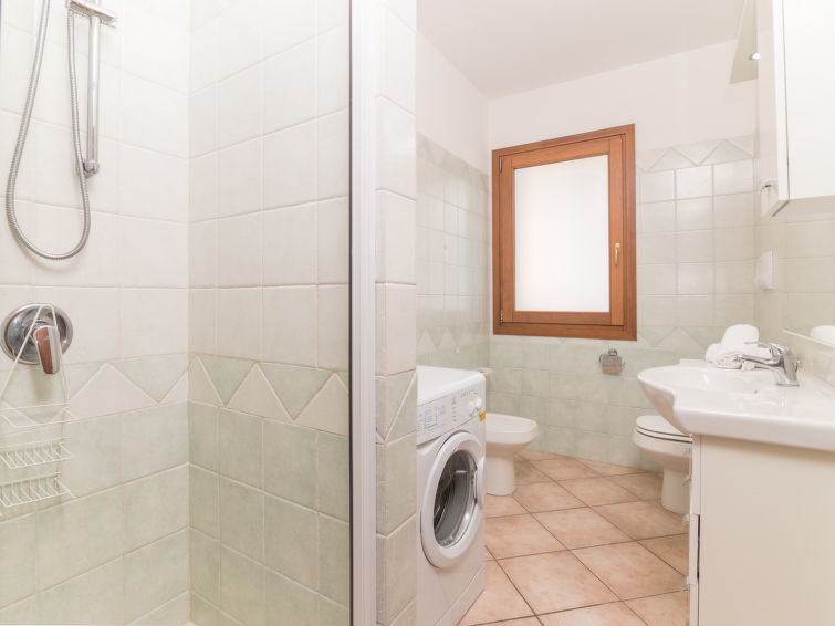 Apartment house, 3 storeys. 6 apartments in the property. 300 m from the centre of Santa Teresa di Gallura, on the outskirts, 15 km from the centre of Palau, 1.5 km from the sea. Private: property 50 m2 (fenced), courtyard. Footpath to the house. Communal covered parking at 20 m, public parking on the road. Parking space or garage only for small to medium-sized cars. Shop, supermarket 300 m, bus stop 1 km, sandy beach "Rena Bianca" 1.5 km. Please note: car recommended."Alessandra", 2-room apartment 50 m2, on the ground floor. Simple and comfortable furnishings: living/dining room with 1 double sofabed (140 cm, length 190 cm), dining table and satellite TV. Exit to the terrace. 1 double bedroom. Kitchenette (mini-oven, 4 gas rings, toaster, kettle, microwave, freezer, electric coffee machine). Shower/bidet/WC. Air-conditioning, forced-air heating (extra). Terrace roofed. Terrace furniture, barbecue (portable), sitting area. Facilities: washing machine, iron, baby cot. Please note: non-smokers only. Maximum 1 pet/ dog allowed. IT090063C2000Q1044