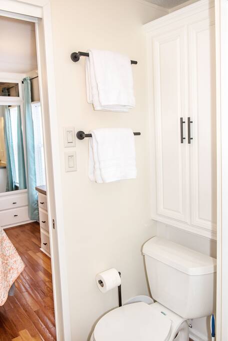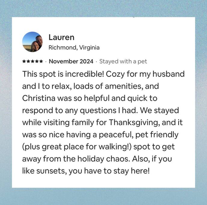 To ensure that you enjoy a restful vacation, there is a private master bedroom with new queen sized Helix Sunset Luxe mattress. This home also has a twin day bed with twin size trundle bed with memory foam mattresses (this provides two twin beds for sleeping), washer, dryer, gas grill, an efficiency kitchen (including dishwasher and other typical appliances and housewares), and a private bathroom with standard plumbing fixtures (not RV or camper style). We provide a Ninja Foodie air fryer oven, convection microwave, and gas cooktop (but no traditional oven). No smoking is allowed. Pets are generally welcome (subject to a pet fee).
