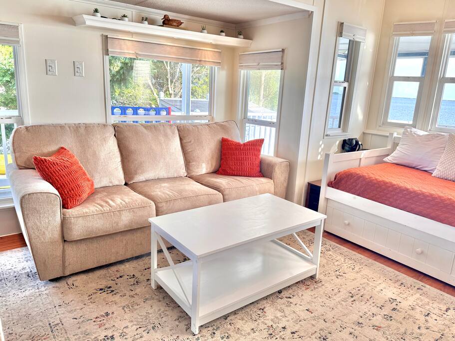 We have tried to think of everything you need to enjoy an amazing beach getaway. This waterfront RV cottage is the perfect home base whether you are seeking a quiet relaxing escape or something more adventurous. The expansive covered porch on this home with ample patio furniture provides endless opportunities to take in the breathtaking sunsets and abundant wildlife on the Back Bay. There are lounge chairs for relaxing and sunbathing next to the water or you can play a game of cornhole while soaking up the views. If you are feeling adventurous, take a paddle using the two single person kayaks available for exploring the bay or bring your fishing poles and try your luck at landing the catch of the day - your porch is less than 10 steps from the water! You are welcome to use our beach chairs and umbrella for your beach time. In addition, the gated Surfside complex provides two outdoor pools, a sauna, playground, fitness room, tennis/pickleball courts (we provide pickleball racket/balls for your use), basketball court, and boat ramp for you to enjoy during your stay. There are miles of trails in the Back Bay National Wildlife Refuge and False Cape State Park for you to enjoy, you can walk/hike or bike (bring your bicycles or rent them locally). If you choose to spend some time indoors, we invite you to enjoy the electric fireplace, the 2 flat screen smart TVs with cable TV, WiFi, a Playstation with assorted games, and a selection of board games, books and movies. We want you to unwind from the stress of day-to-day life and go home refreshed, we do not give you a list of cleaning or chores to do before you depart.