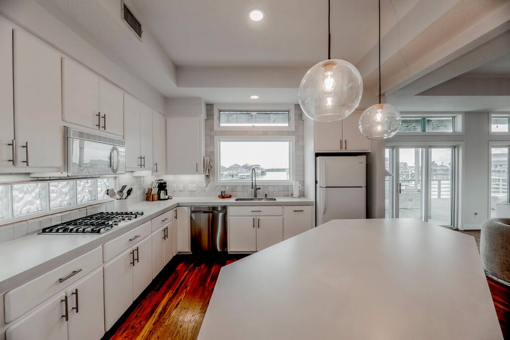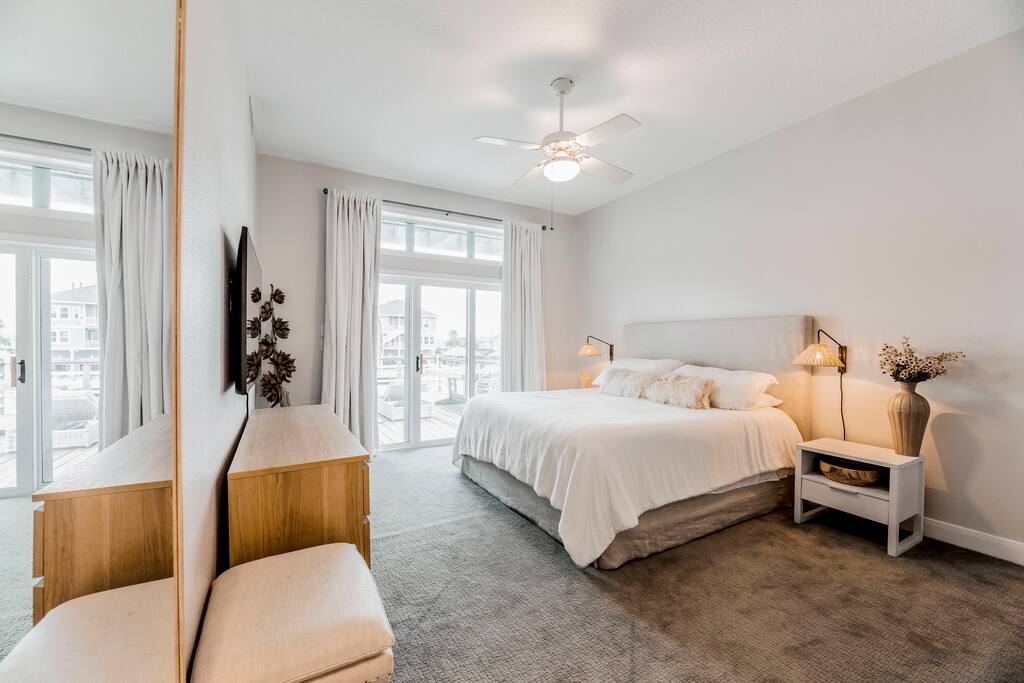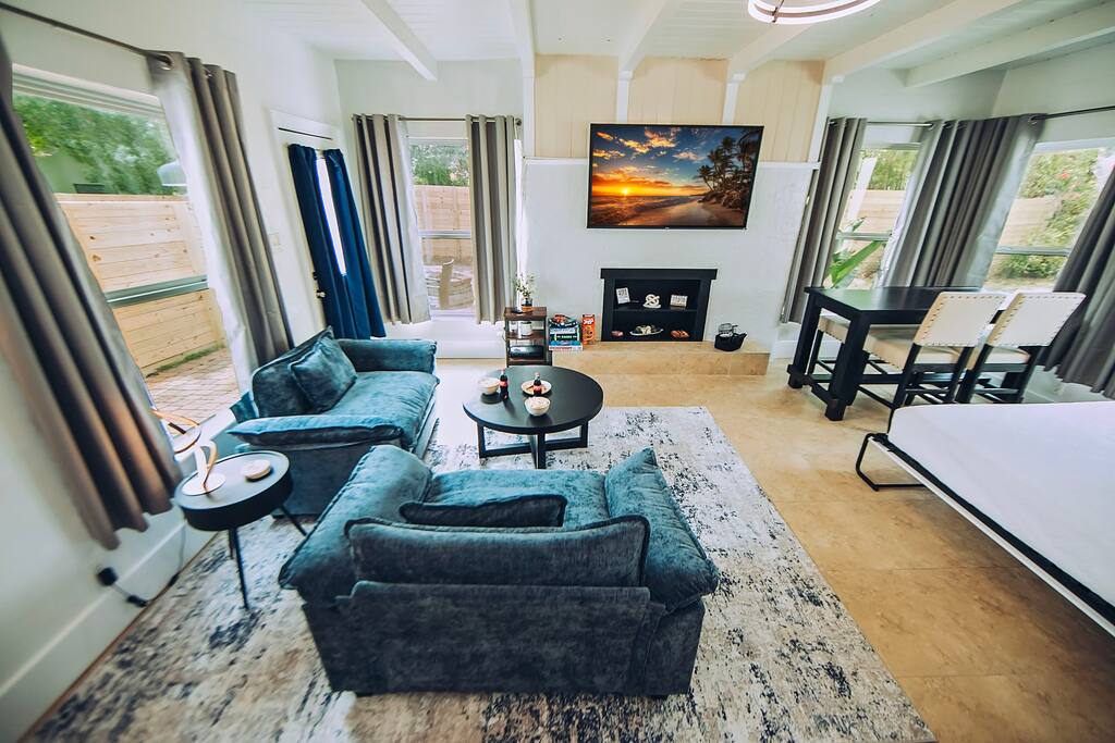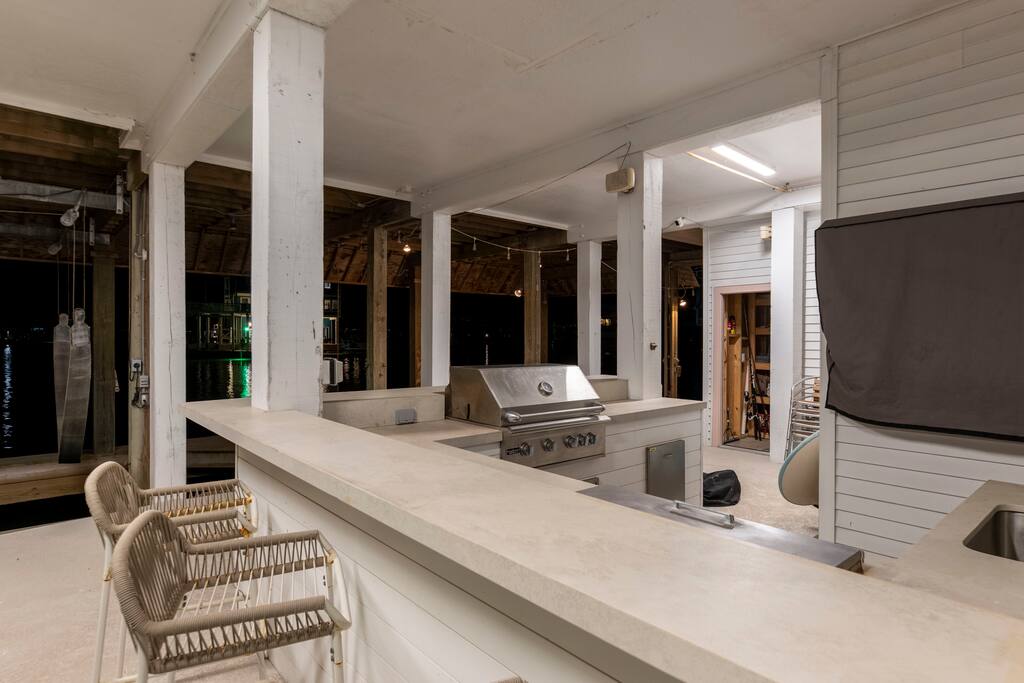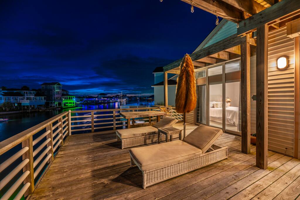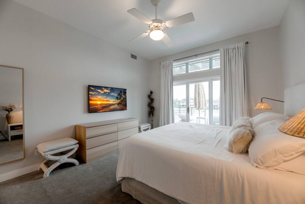Relax in the cozy living room with a flat-screen TV and ample seating, or cook up a feast in the fully equipped kitchen featuring modern appliances and everything you need for shared meals. Step outside to the canalfront deck with outdoor dining and furniture, ideal for sunset dinners or morning coffee.