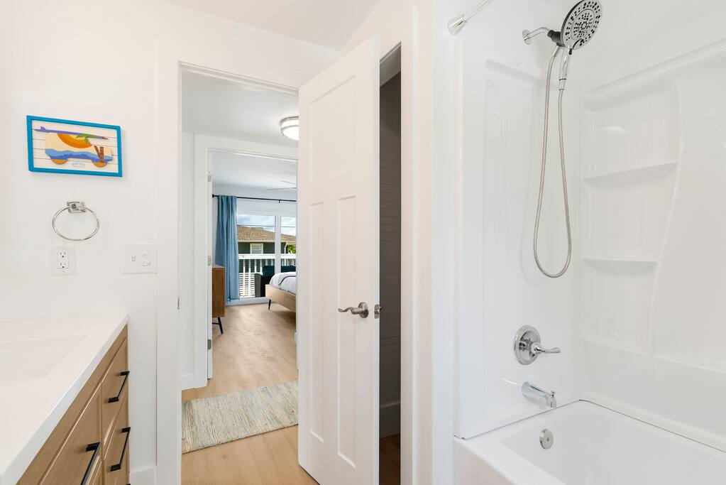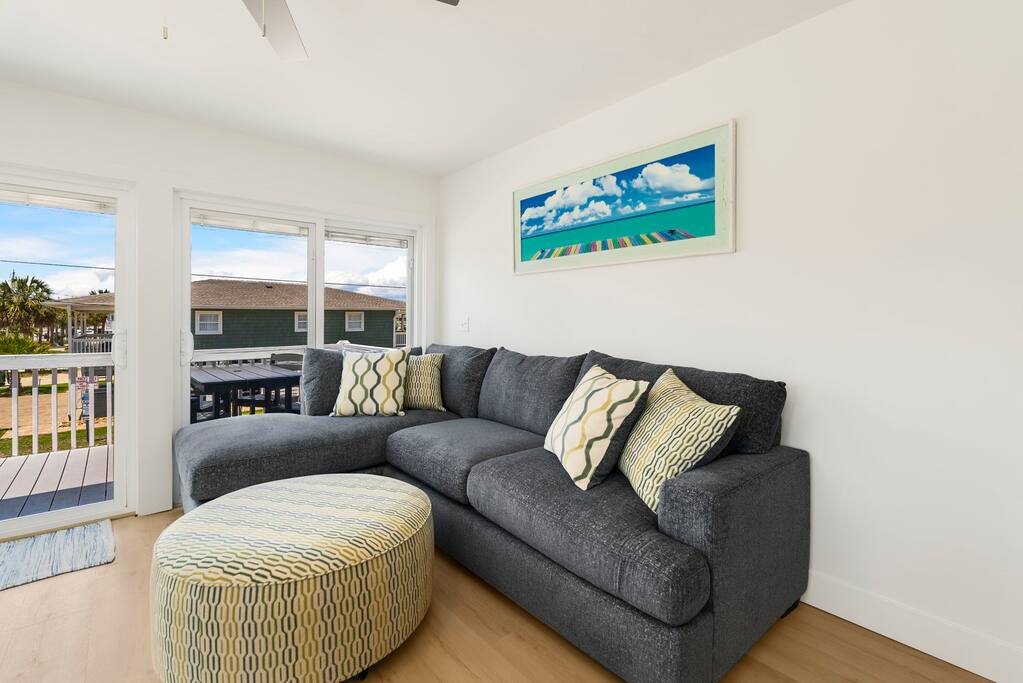 Our raised beach house sleeps 12 guests across 3 bedrooms and 2 full bathrooms. Please note: stairs are required to reach the front door.