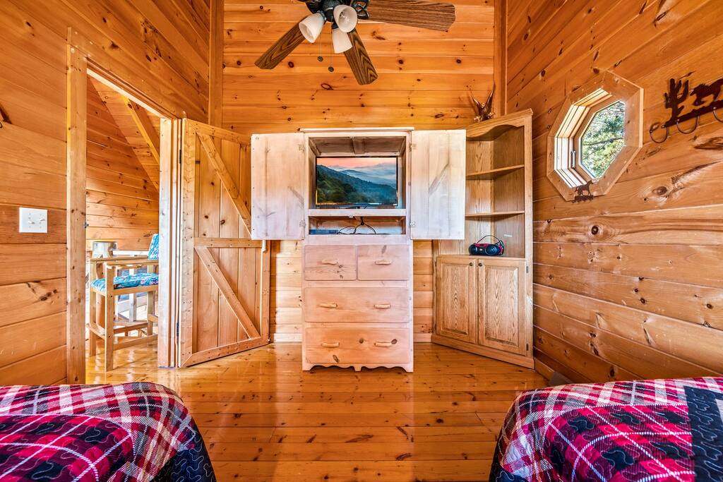 Bearfoot Pines is a charming log cabin complete with a classic rocking chair front porch—the perfect place to sip coffee and soak in the mountain air. With 3 cozy bedrooms, 2 full bathrooms, and space for up to 8 guests, it’s an ideal retreat for families or small groups. Just 5 miles from downtown Pigeon Forge, you’ll have quick access to top attractions while enjoying a peaceful escape. And don’t forget your fishing pole—this cabin is just a short walk from a private, catch-and-release pond!