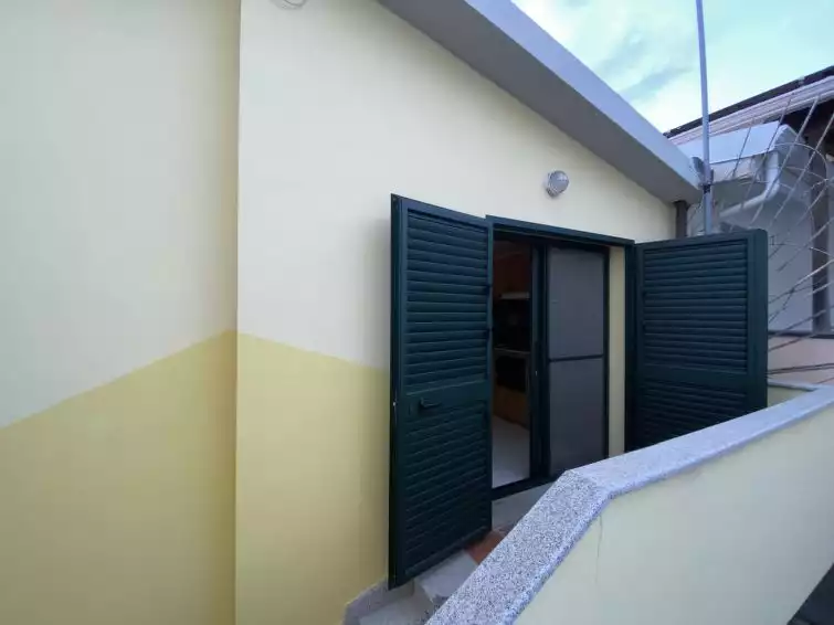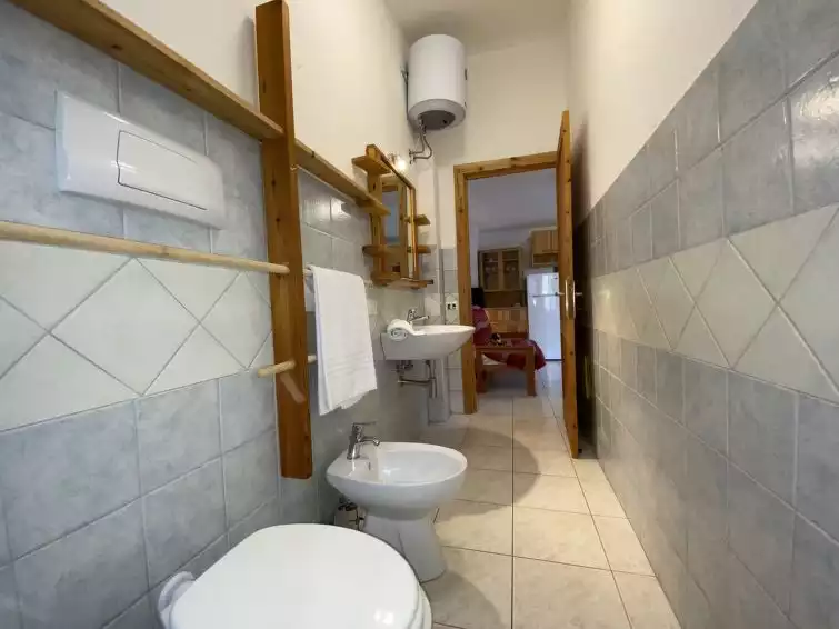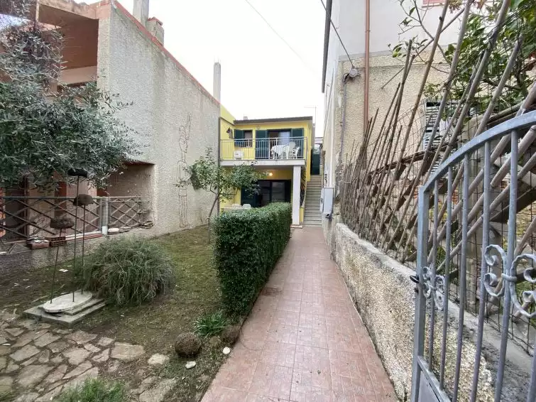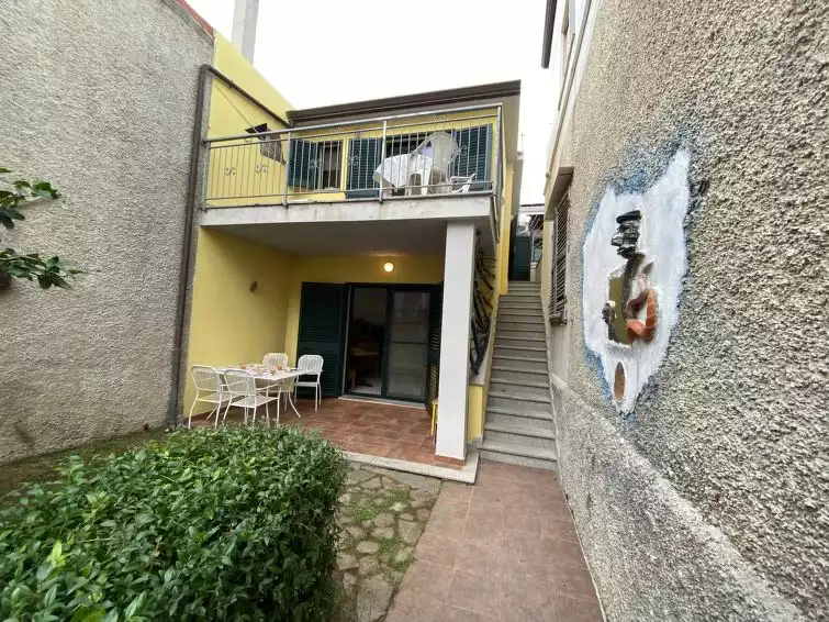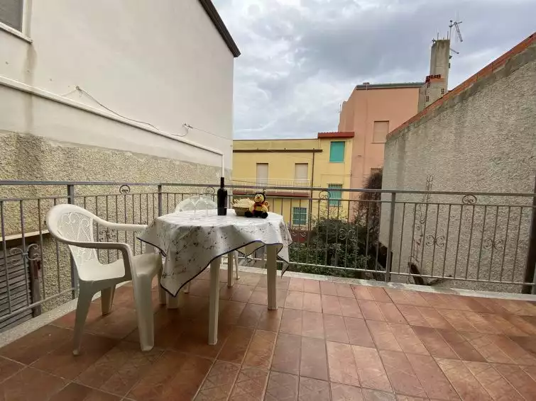 Cosy, simple apartment house. In the resort La Caletta, in a central position, 200 m from the sea. For shared use: courtyard. In the house: WiFi. 50 m long narrow motor access to the house. Public parking on the road. Supermarket 250 m, restaurant 200 m, bar 65 m, bus stop 600 m, sandy beach "La Caletta" 250 m. Nearby attractions: Olbia 51 km, San Teodoro 30 km, Capo Comino 12 km."Blue House", 2-room apartment 35 m2 on 1st floor. Simple and cosy furnishings: living/dining room with sliding door, window onto the courtyard with 1 double sofabed (140 cm, length 190 cm), dining table and TV. 1 double bedroom, window onto the courtyard. Exit to the terrace. Kitchenette (oven, 4 gas rings, freezer). Shower/bidet/WC. Boiler (50 litres). No heating option. Terrace. Terrace furniture. Facilities: washing machine, iron, baby cot for up to 2 year olds, hair dryer. Internet (WiFi, free). Please note: non-smoking house. IT091085C2000P2217